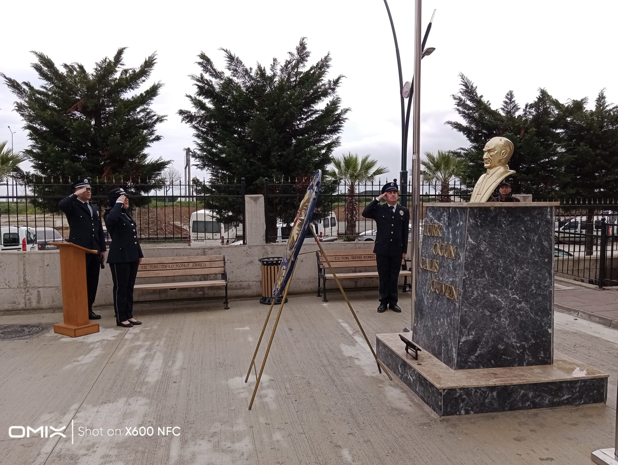 Günün anlam ve önemine binaen ilk önce Atatürk Büstü önüne Emniyet Müdürü Bünyamin Akkaya davet edilerek çelenk sunumu yaptı.