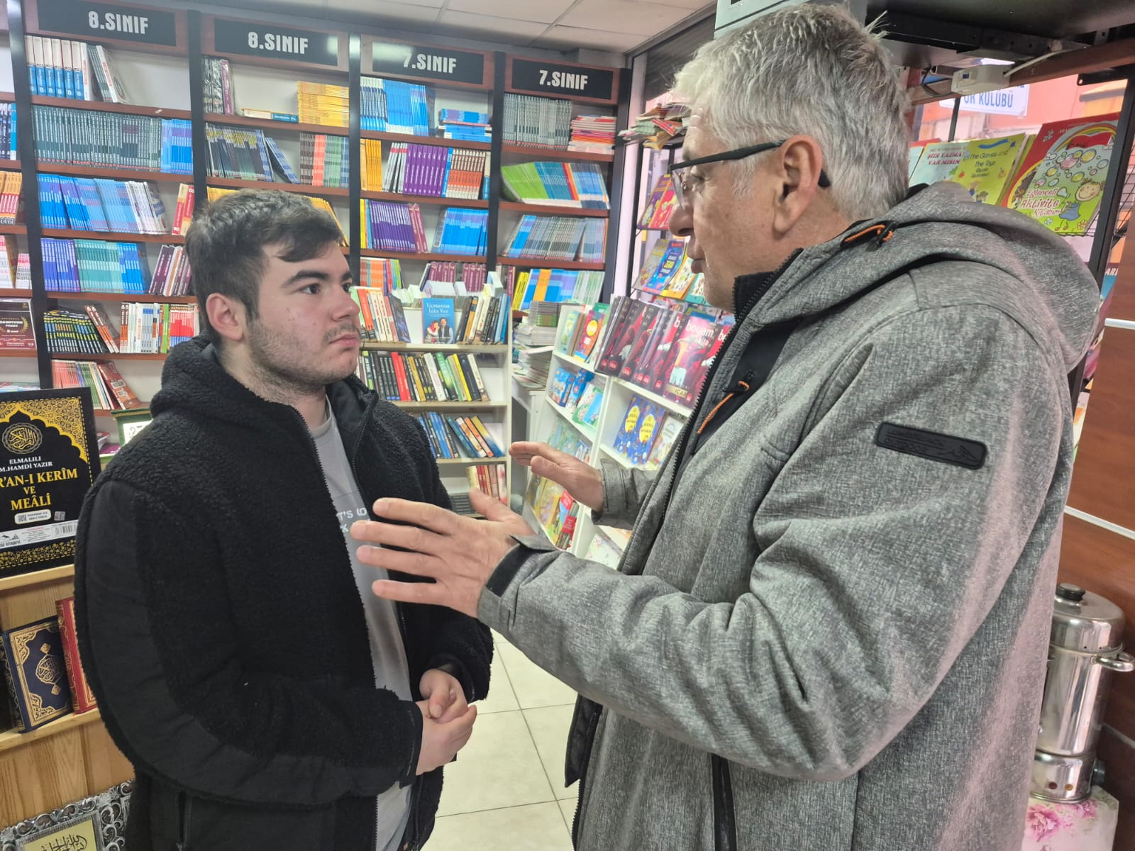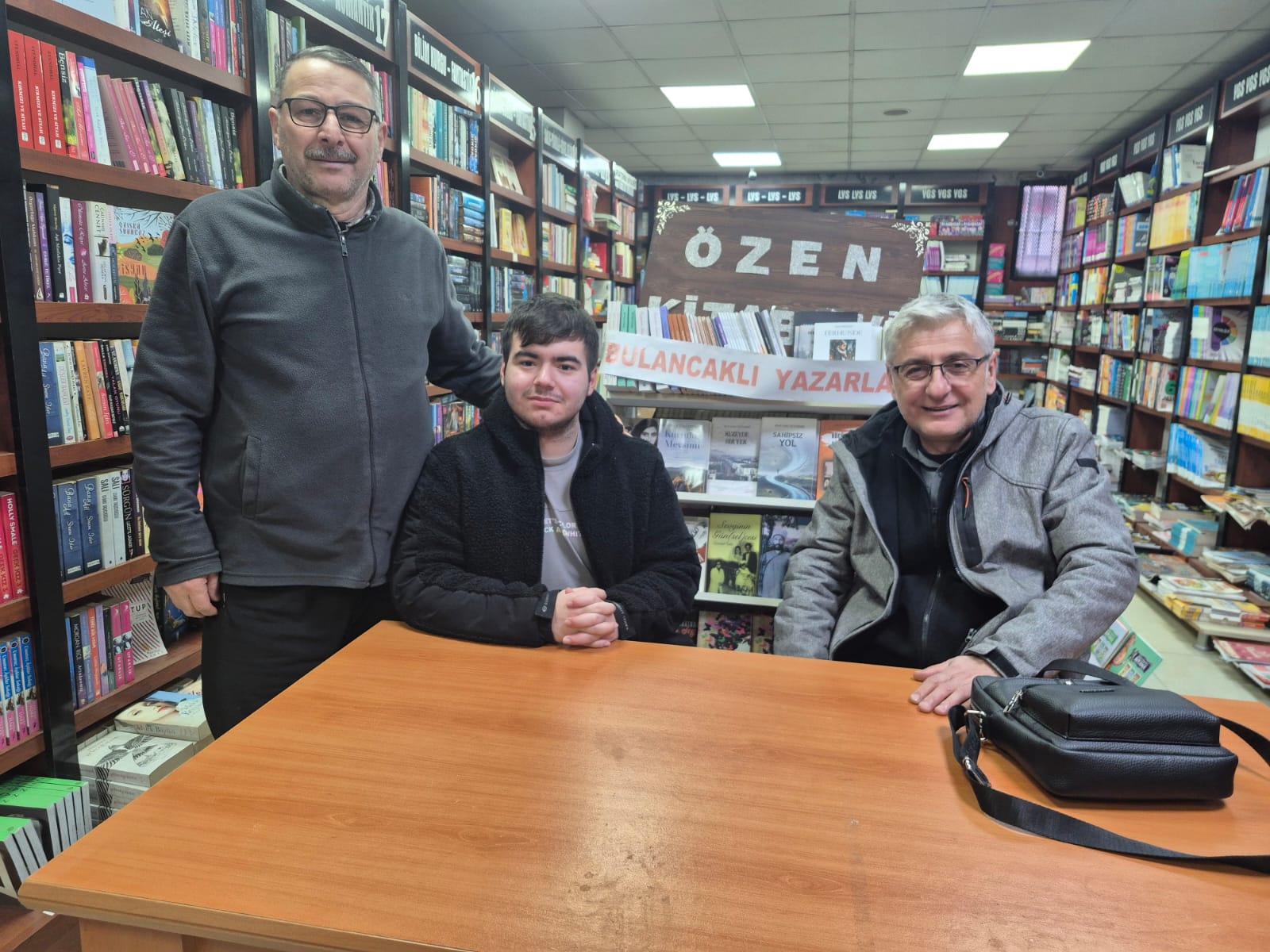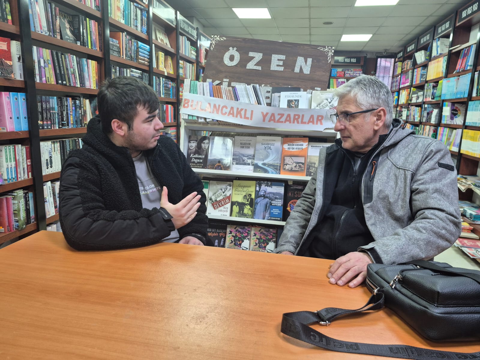 Genç yazar, Bulancak Özen Kitabevi’nde hemşehrisi olan yazar Erkan Uzunalioğlu ile bir araya geldi. Objektiflere yansıyan karede; masanın üzerinde kitaplar, arka planda yazar afişleri ve önünde kendi eseri “Güz’den Yapraklar” bulunan genç bir kalemin vakur duruşu dikkat çekti.
