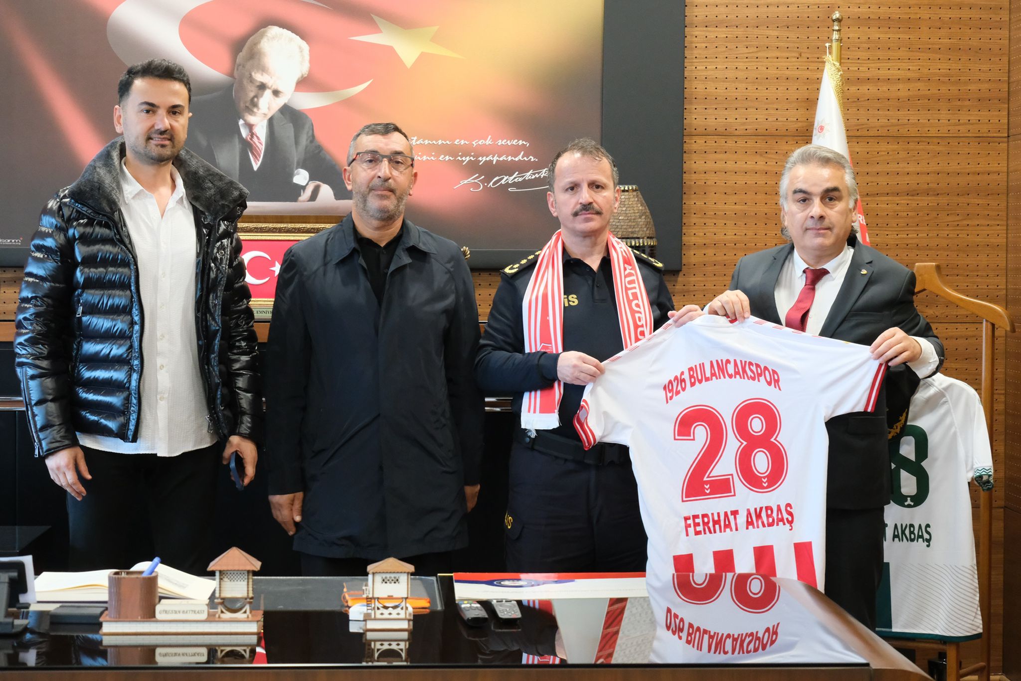 1926 Bulancakspor Kulüp Başkanımız sayın Mustafa Çolakoğlu ile basın sözcülerimiz sayın Fatih Alparslan ve sayın Rıfat Turan, Giresun İl Emniyet Müdürü sayın Ferhat Akbaş ve Giresun İl Jandarma Komutanı sayın Nihat Özkök’ü makamlarında ziyaret ettiler.