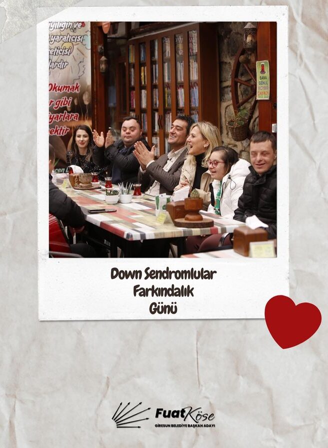 Giresun’da “BİR NEFES CAFE” işleten Down Sendromlu çocukları ziyaret eden Köse çifti, onların dünyaya kattığı ışık ve sevgiyi paylaştı. Böylesi anlamlı zaman diliminde, Giresun’un sevilen belediye başkan adayı Fuat Köse ve eşi Nalan Köse, Down Sendromlu çocukları her zaman ziyaret ettiklerini açıkladılar. Kalplerindeki derin sevgiyle her bir bireyin yaşamdaki eşsiz değerini kutlayan çift, Down Sendromlu kardeşlerimizin dünyaya kattığı neşe ve sevgiye odaklandı.