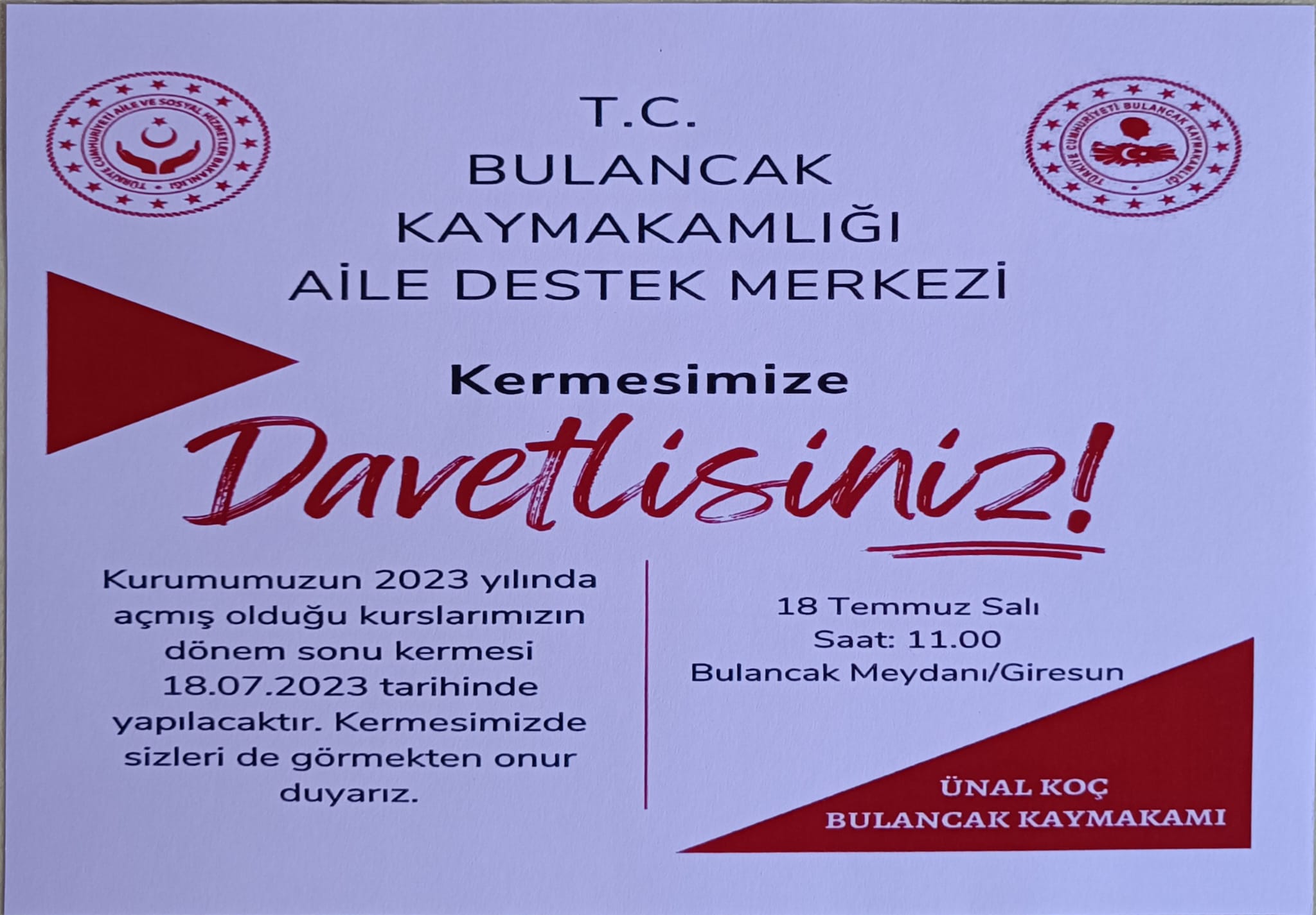 Bulancak ilçe kaymakamlığı ve Aile ve Sosyal Hizmetler Müdürlüğü’nün ortaklaşa gerçekleştirdiği kermez Bulancak Cumhuriyet Meydanı’nda ilçe prtokolunun katıldığı törenle sunuldu.
