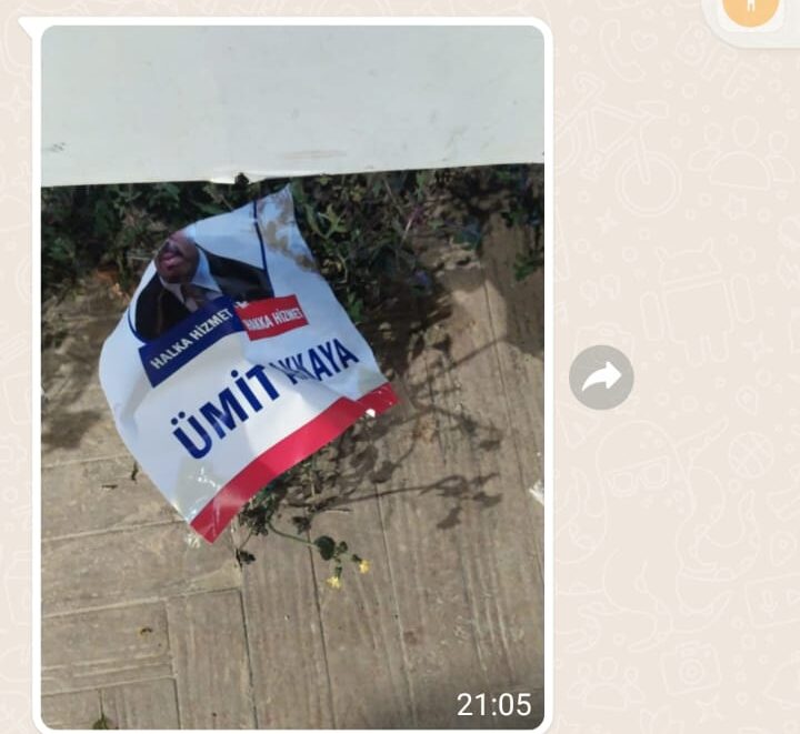 Son günlerde mahalle genelindeki sokaklara asılan seçim afişlerinden Ümit Akkaya’nın afişlerinin bazılarına zarar verilerek yırtıldığı objektiflere böyle yansıdı. Bu durum, mahalle sakinleri arasında tepkilere neden oldu.
