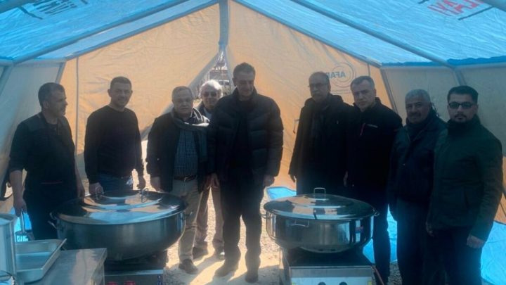 Genel Merkezimiz’ den gönderilen erzakın bölgeye ulaşması sonrasında şubelerimizin çabalarıyla yaşama geçirilen seyyar mutfaklardan Reyhanlı Şube Başkanımız Gökhan Turan gözetiminde her gün 1600 kişiye 3 öğün sıcak yemek sunan Kırıkhan ve Harbiye’deki ikisini ziyaret ettiler.