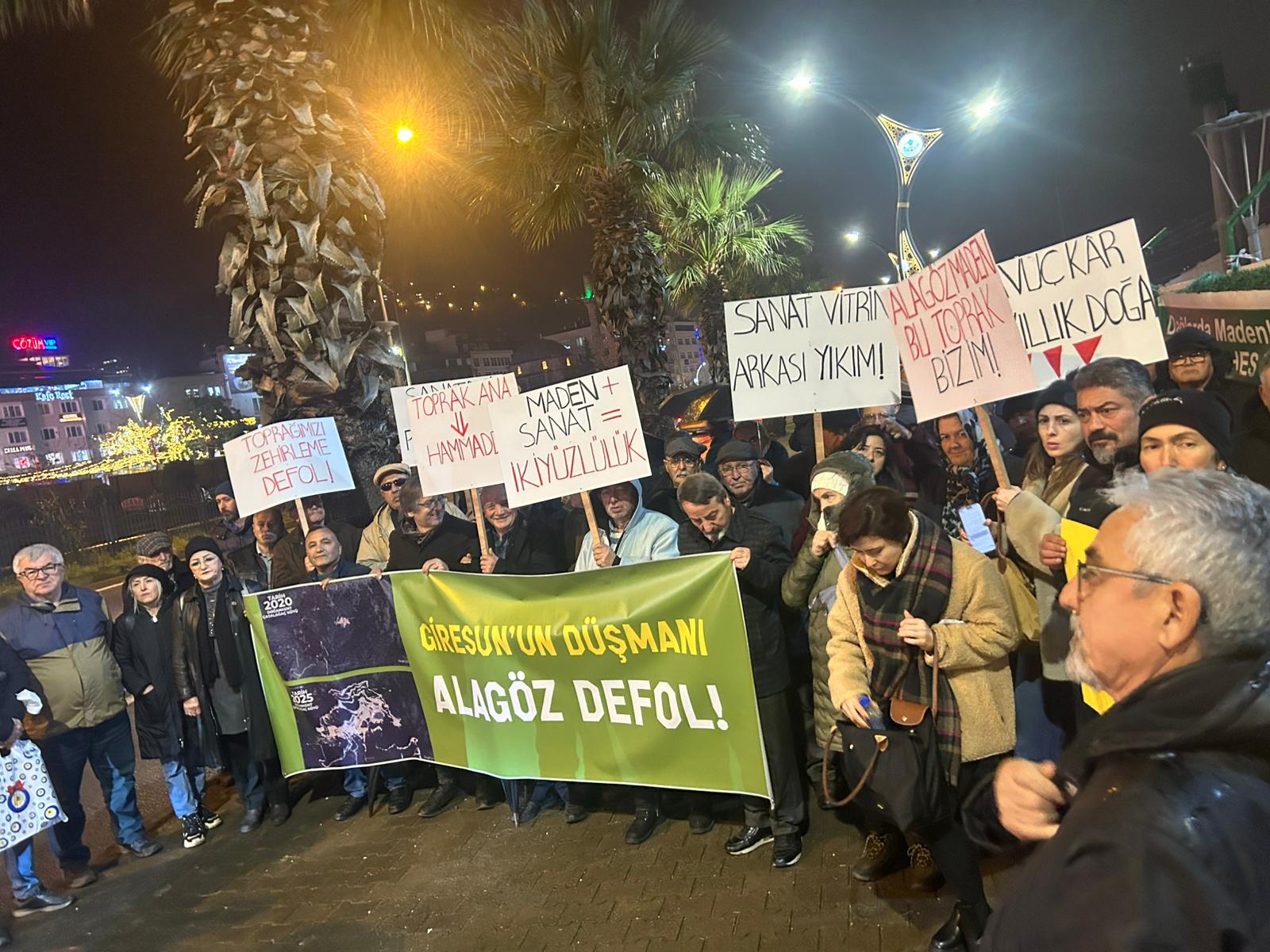 Hal böyleyken Alagöz Holding’e bağlı Alagöz Kültür-Sanat tarafından burada, Giresun Belediyesi Kültür ve Fuar Merkezi’nde yapılan ‘Destanların Dansı’ etkinliği en hafif tabirle biz Giresunluların aklıyla alay etmektir. Bizim kültürümüzü tasfiye etmeyi önüne koymuş bir şirketin ilimizde kültür ve sanat faaliyetleri yaparak olumlu algı oluşturmaya çalışmasını kabul etmiyoruz. İnsanlığın en önemli değerlerinden olan kültür ve sanatın insanlığın en adi suçlarının üstünü örtmesini kabul etmiyoruz. İster Alagöz olsun, ister başka bir yağma ve talancı madencilik şirketi olsun kimseyi çocuklarımızın geleceğiyle, atalarımızdan bizlere nesillerdir aktarılan değerlerimizle oynatmayız. Alagöz’ün kültür-sanatının altında yukarıda özetlemeye çalıştığımız ancak bir basın açıklamasına sığamayacak kadar büyük bir Giresun düşmanlığı vardır ve biz artık buna dur diyoruz.