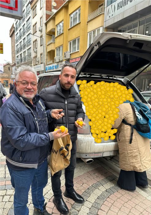 MHP İlçe Başkanı Tanju Alparslan, Silifke’den getirdiği Limonları halkına dağıttı