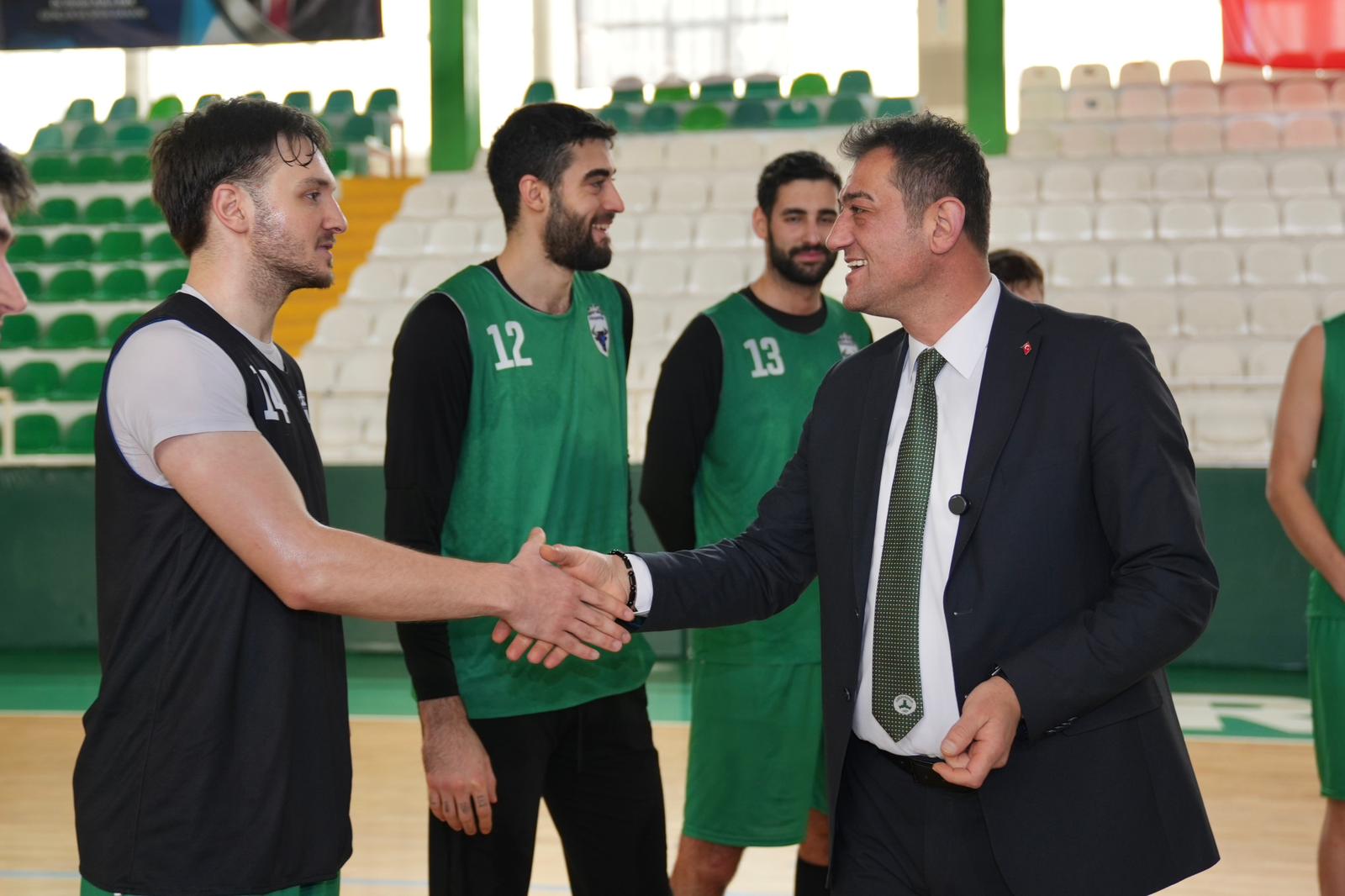 Giresun Belediye Başkanı Fuat Köse’de temsilcimizin 19 Eylül Spor Salonu’nda yaptığı antrenmanı ziyaret ederek baklava ikramında bulundu ve zorlu maç öncesinde başarı dileklerini iletti.