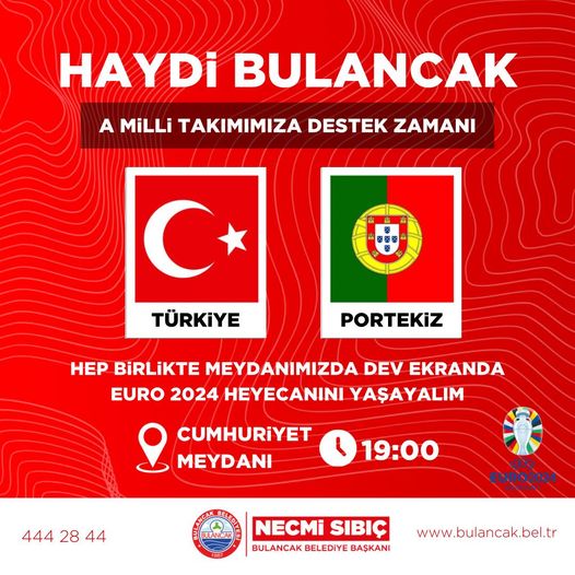 Bulancak halkının yoğun ilgi göstermesi beklenen bu etkinlikte, milli takımımızın sahadaki mücadelesini hep birlikte izleyerek coşku dolu anlar yaşanacak. Herkesi bu büyük buluşmaya davet eden Başkan Sıbıç, etkinliğin Bulancak’ta büyük bir heyecan yaratacağını belirtti.