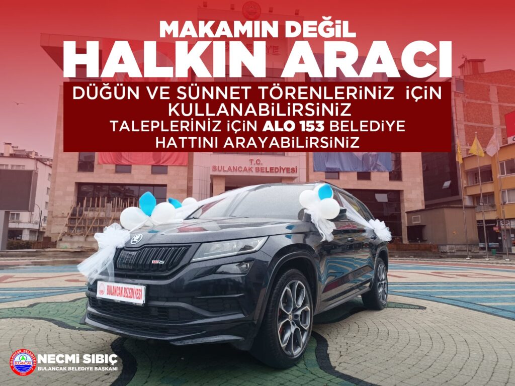 Başkan Sıbıç’ın kararıyla, belediyeye ait makam aracı artık özel günlerinde kullanmak isteyen vatandaşların hizmetine sunulacak. Aracı kullanmak isteyen vatandaşlar, 153 Alo Belediye Hattını arayarak Belediyenin Halk Masası ve Halkla İlişkiler Müdürlüğüne talep kaydı oluşturabilecekler. Böylece düğün, sünnet töreni gibi özel günlerde araç ihtiyacı olan vatandaşlar, belediyenin desteğinden faydalanabilecekler.