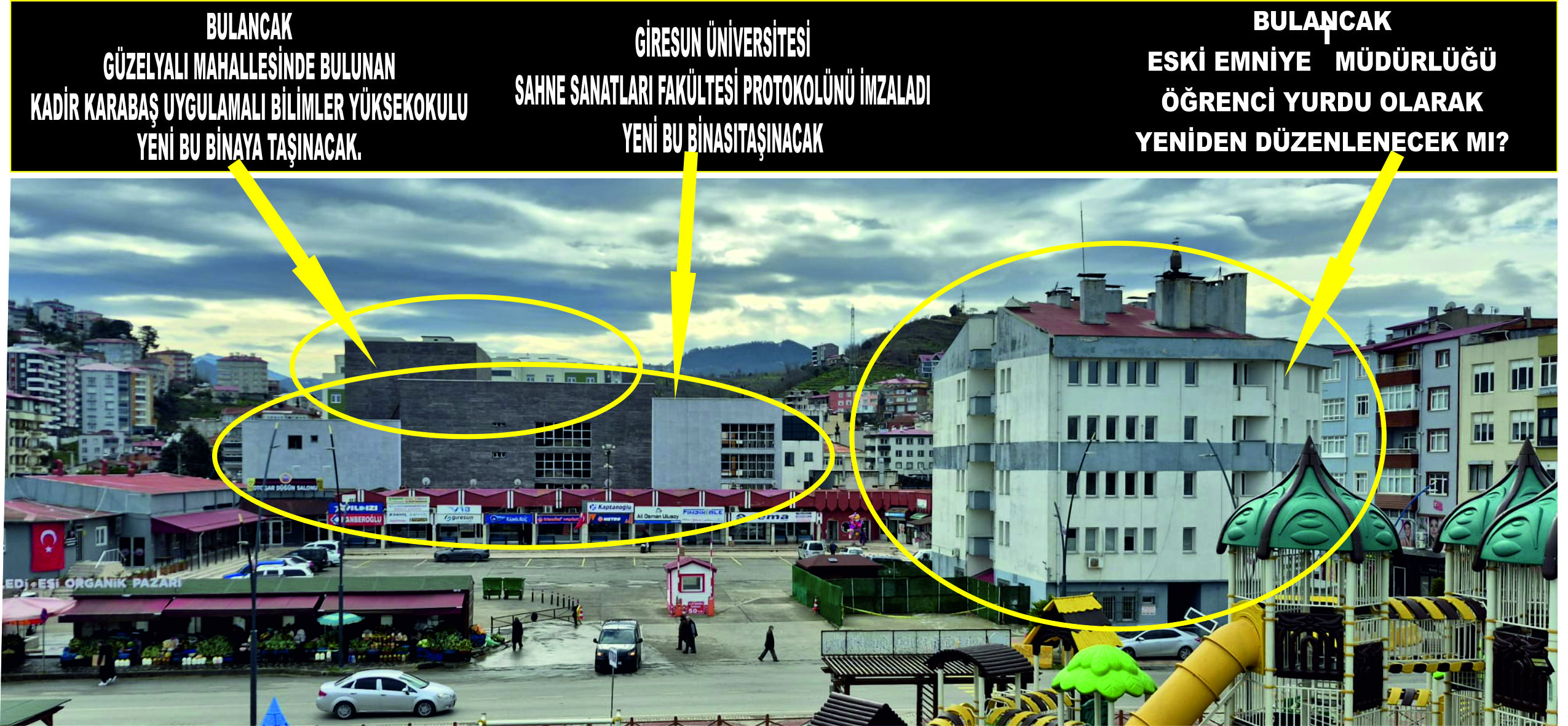 Aynı bölgenin hemen arkasında, yeni yerleşim alanı olarak planlanan sahada Giresun Üniversitesi Sahne Sanatları Fakültesi’nin kurulmasına yönelik protokolün imzalandığı, bu sürecin de Bulancak Belediyesi’nin destek ve takibiyle ilerlediği öğrenildi.