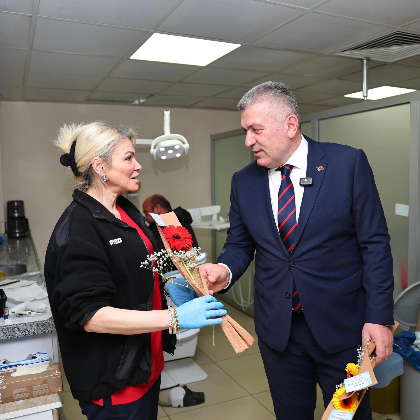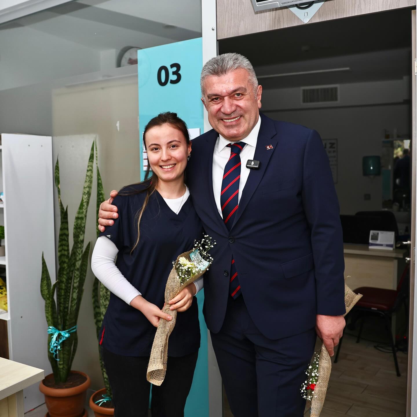 Ziyaretten duydukları memnuniyeti dile getiren sağlık çalışanları ise bu anlamlı günde hatırlanmanın kendileri için büyük bir moral olduğunu ifade ederek Başkan Sıbıç’a teşekkür etti.