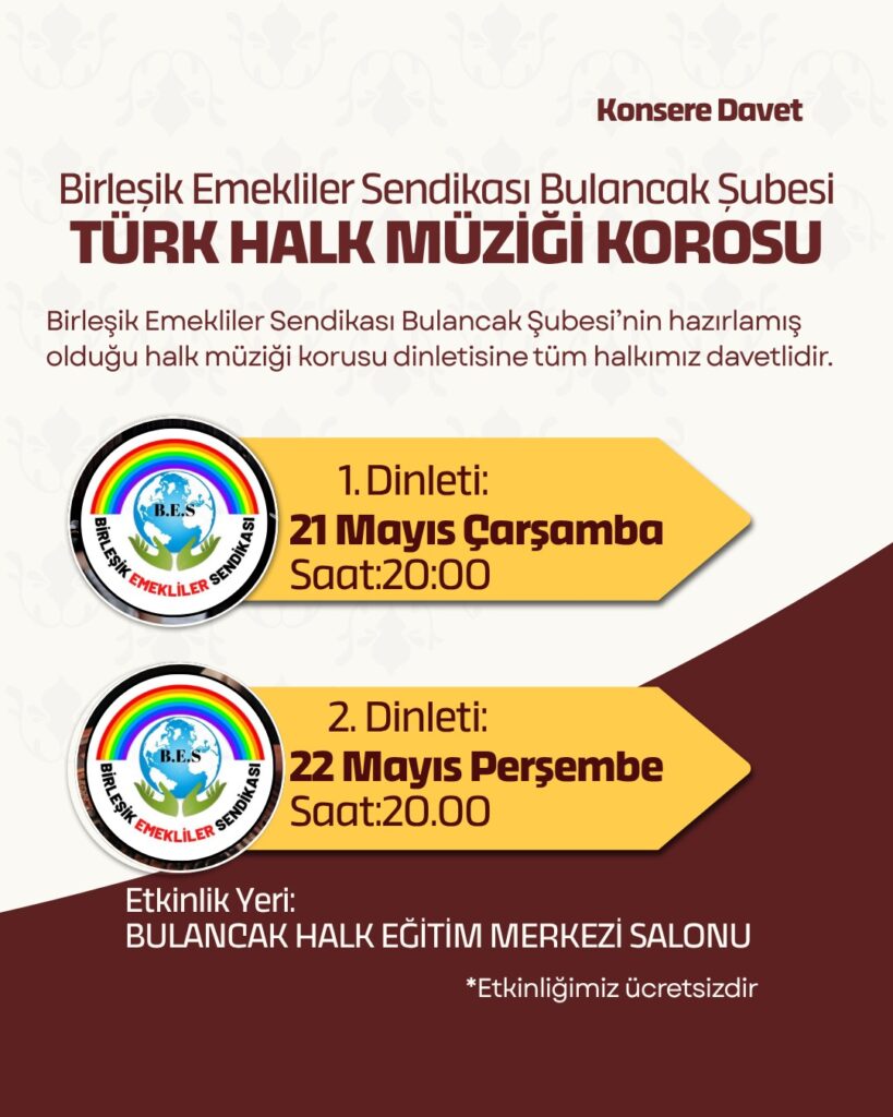 Bulancak Halk Eğitim Merkezi Salonunda düzenlenen konser, yoğun katılımla büyük ilgi gördü. Gecede sahne alan BES Türk Halk Müziği Korosu, dinleyicilere duygusal ve coşkulu anlar yaşattı.