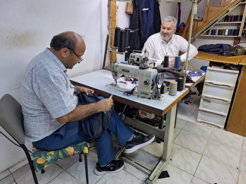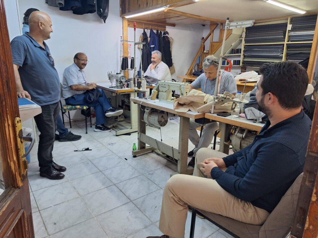 Hasan Üstün, ziyaret sırasında Milletvekili Hasan Turan’a da özel bir kloş pantolon diktiğini paylaştı.