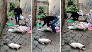 Bulancak İlçesi’nde Özen Kitap ve Kırtasiye işletmeciliği yapan Ahmet Kara, mahalledeki kedilere sahip çıktığı objektiflerimize böyle yansıdı. İlçede tanına ve hayırseverliğiyle de sayılan değer gören Kara’nın hayvan sever ruhuyla kedilere mama alarak onları günde iki defa besleğine tanık olduk.
