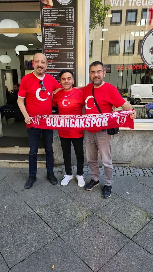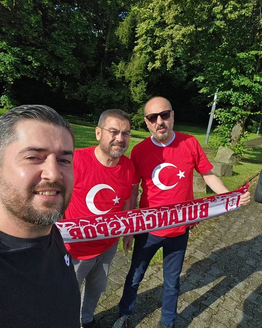 Bulancaklı Olgun Apaydın, Almanya’nın Dortmund şehrinde bulunan iş yerinde, uzun zamandır görüşemediği Bulancaklı arkadaşları Ertan Özgen ve Ahmet Özgen ile bir araya geldi. Bu anlamlı buluşma, yaklaşan milli maç öncesinde hem hasret gidermelerine hem de milli duygularını paylaşmalarına vesile oldu.