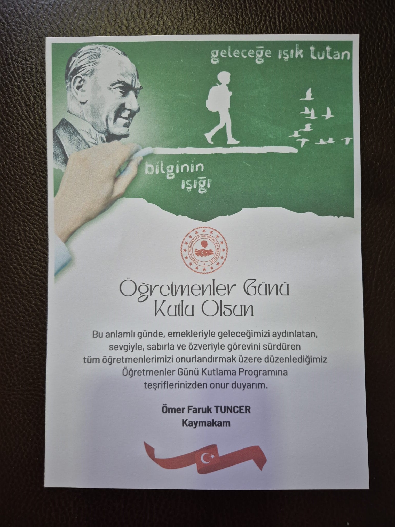 Giresun Bulancak ilçesinde gerçekleşecek olan program için hazırlanan davetiyede, geleceğe ışık tutan öğretmenlerin fedakârlık ve özveriyle yürüttükleri kutsal görevin önemine vurgu yapıldı.