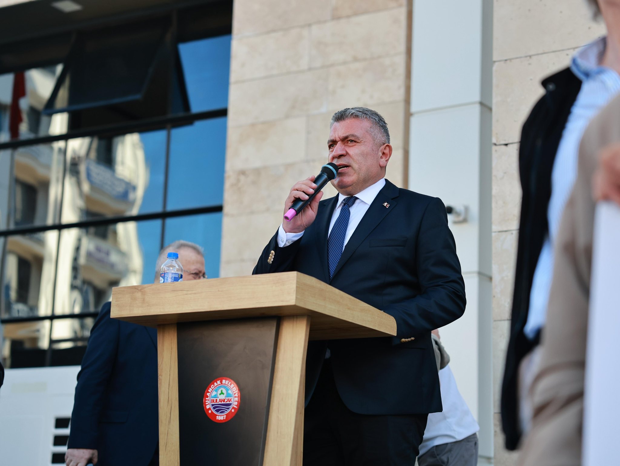 Bulancak Cumhuriyet Meydanı’nda düzenlenen açıklamaya Bulancak Belediye Başkanı Necmi Sıbıç da katılarak destek verdi.
