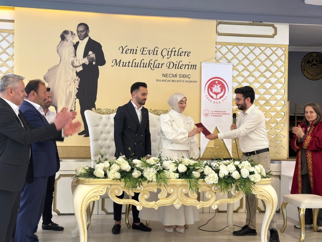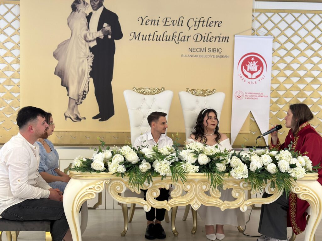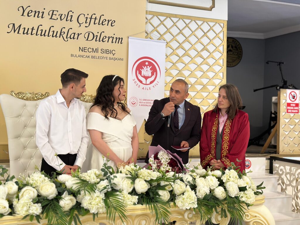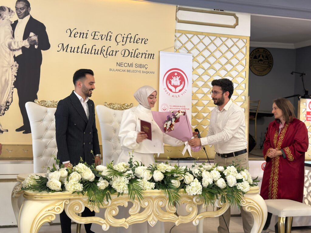 Bulancak Sosyal Hizmet Merkezi Müdürlüğü tarafından yürütülen “Evlilik Eğitimi” projesi kapsamında, bu destekten yararlanan ilk çift olan Mihriban Guguk ve Samet Karaoğlanoğlu dünyaevine girdi.