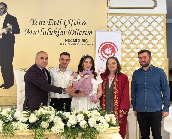 Genç çiftin nikah merasimi, Bulancak Otogar Düğün Salonu’nda yoğun katılımla gerçekleşti.