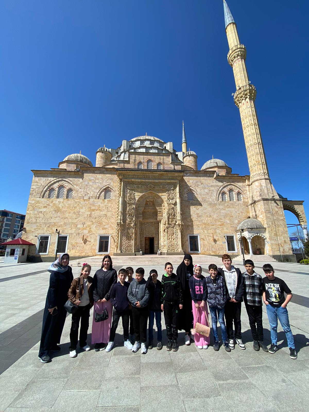 gibi özellikleriyle öne çıkıyor. Aynı anda yaklaşık 4 bin 500 kişiye ibadet imkânı sunan cami, ihtişamıyla öğrencileri adeta büyüledi.