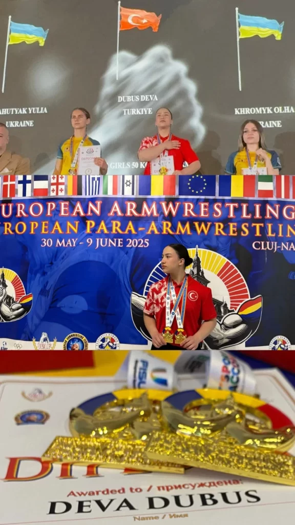 Romanya’nın Cluj kentinde 30 Mayıs – 9 Haziran 2025 tarihleri arasında düzenlenen 2025 Avrupa Bilek Güreşi Şampiyonası’nda, Giresun’un Bulancak ilçesinden yetişen Milli Sporcumuz Deva Dübüş, tarihi bir başarıya imza attı.