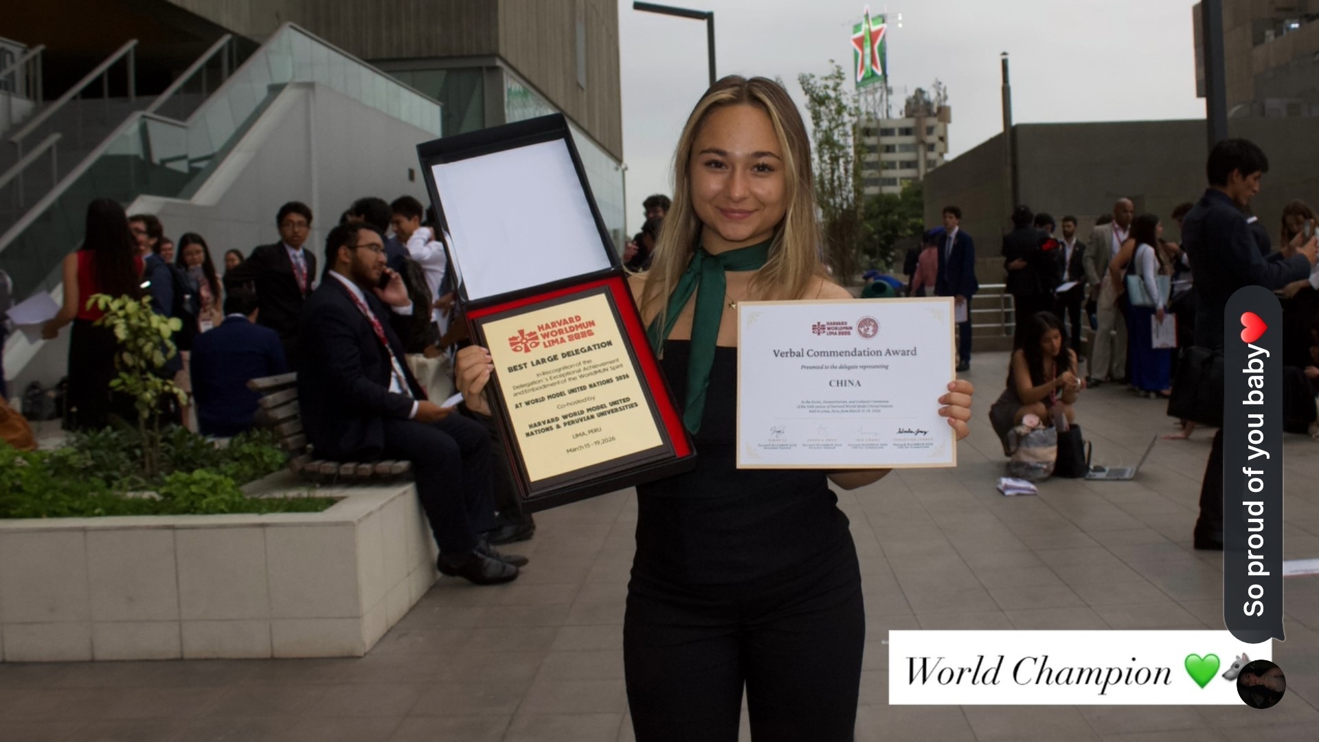 15-19 Mart 2026 tarihleri arasında Peru’nun Lima kentinde, Harvard Üniversitesi organizasyonuyla gerçekleştirilen World Model United Nations 2026’da Talia Aşar, hem bireysel kategoride hem de üniversitesi adına “En İyi Delegasyon” ödülünü kazanarak dünya birinciliğine imza attı.