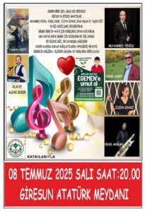 08 Temmuz 2025 Salı günü Saat: 20.00’da Giresun Atatürk Meydanı’nda bu özel gecede;