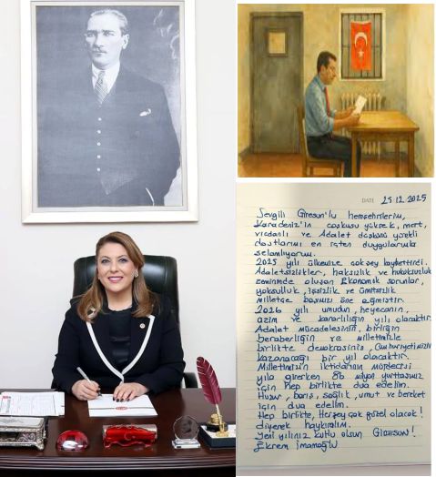 Giresun Cumhuriyet Halk Partisi Milletvekili Elvan Işık Gezmiş, CHP Cumhurbaşkanı adayı Ekrem İmamoğlu’nun Giresunlu hemşehrilerine el yazısıyla kaleme aldığı mektupla selamlarını ve yeni yıl mesajını ilettiğini duyurdu.