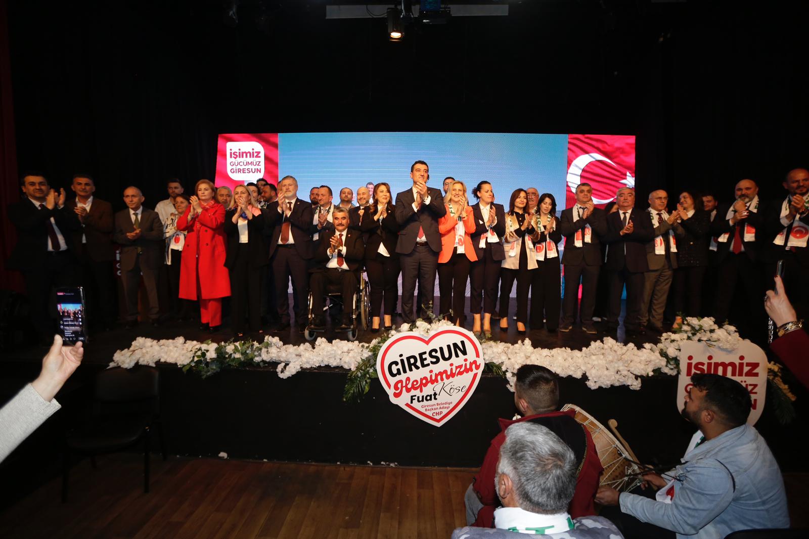 Cumhuriyet Halk Partisi Giresun Belediye Başkan Adayı Fuat Köse’nin proje tanıtım ve lansman toplantısı büyük bir coşkuyla yapıldı. Vahit Sütlaş Sahnesinde yapılan görkemli tanıtım toplantısında salon Fuat Köse’nin sevenleri ile dolup taştı.