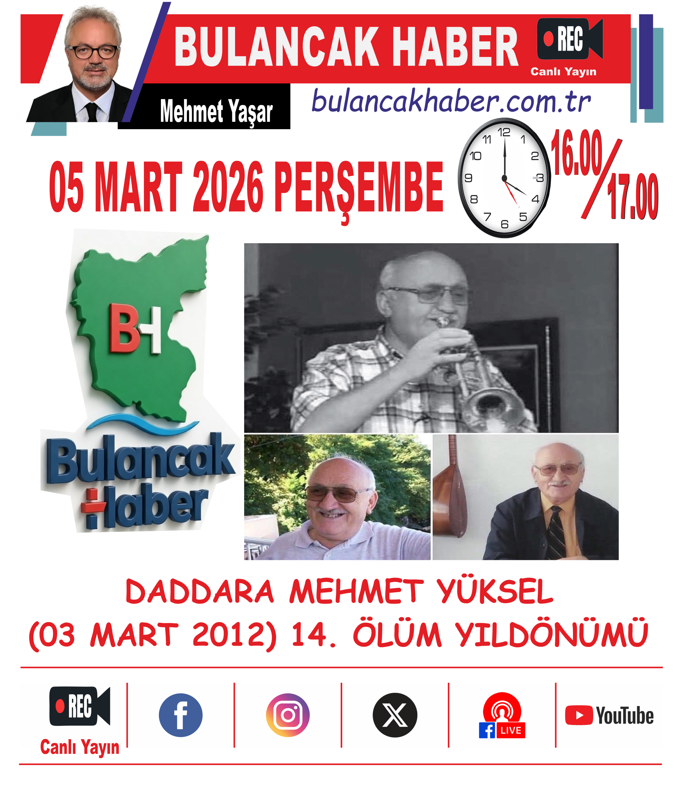 Bulancak Haber Genel Yayın Yönetmeni Mehmet Yaşar, merhum gazeteciyi anmak amacıyla bu akşam gerçekleştirilecek canlı yayında da Mehmet Yüksel’i anacaklarını belirtti.