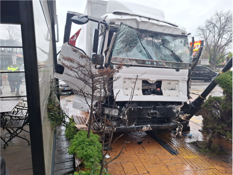 Edinilen bilgilere göre, fren arızası nedeniyle kontrolden çıkan kamyonda sürücü ve yanında bulunan kişi hafif yaralandı. Kazanın, şehir merkezindeki Elmasım Fındık ve Dondurma İşletmesi’ne sadece birkaç metre mesafede durması ise “Verilmiş sadakamız varmış” dedirtti.