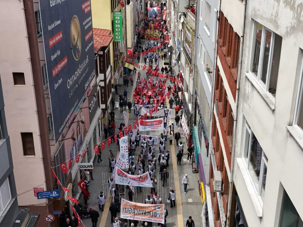 Sendikalar, sivil toplum kuruluşları ve vatandaşlar, Giresun Gazi Caddesi’nde bir araya gelerek Cumhuriyet Meydanı’na yürüdü. Renkli pankartlar ve sloganlar eşliğinde gerçekleşen yürüyüşte emek vurgusu ön plandaydı.