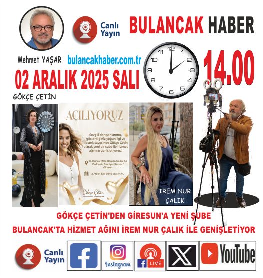 Açılış, 2 Aralık Salı günü saat 14.00’te gerçekleştirilecek. Etkinlik, bölgede büyük bir ilgiyle takip edilen Bulancak Haber tarafından da canlı olarak izleyicilere aktarılacak.