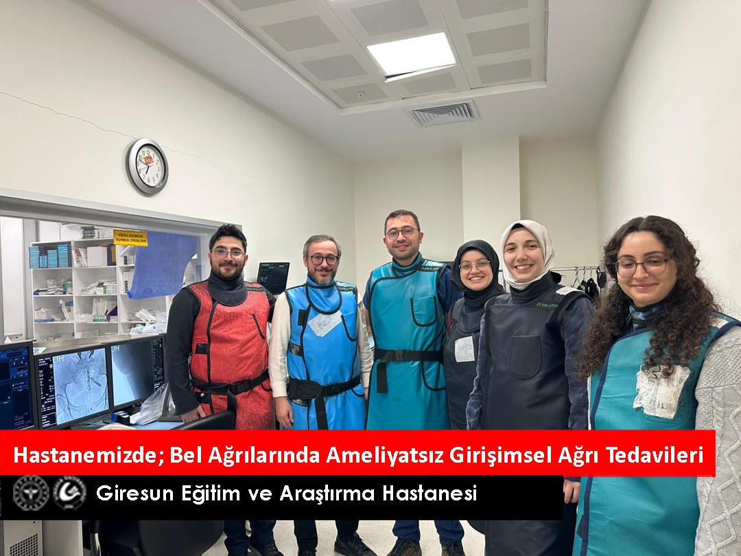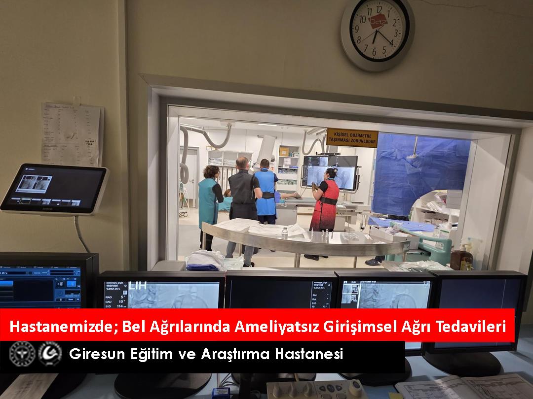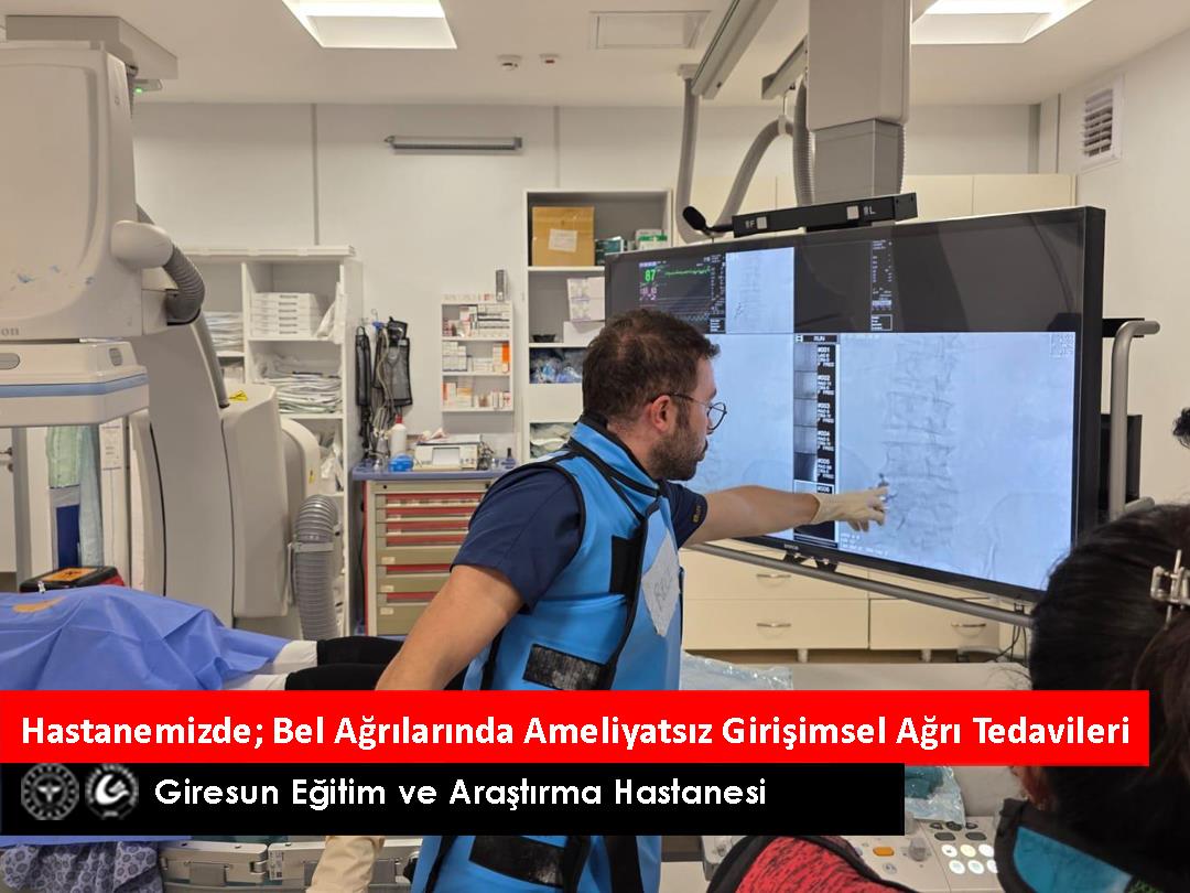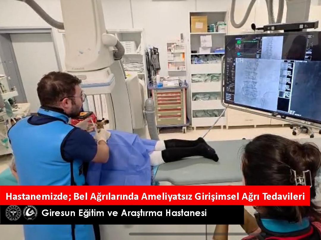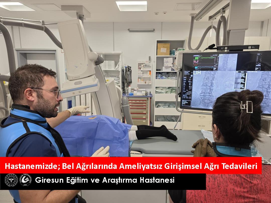 Giresun Eğitim ve Araştırma Hastanesi Fiziksel Tıp ve Rehabilitasyon (FTR) Kliniği’nde, bel ağrısı şikâyeti olan hastalarımız için ameliyatsız, girişimsel tedavi yöntemleri Doktor Öğretim Üyesi Evren Er tarafından uygulanmaktadır.