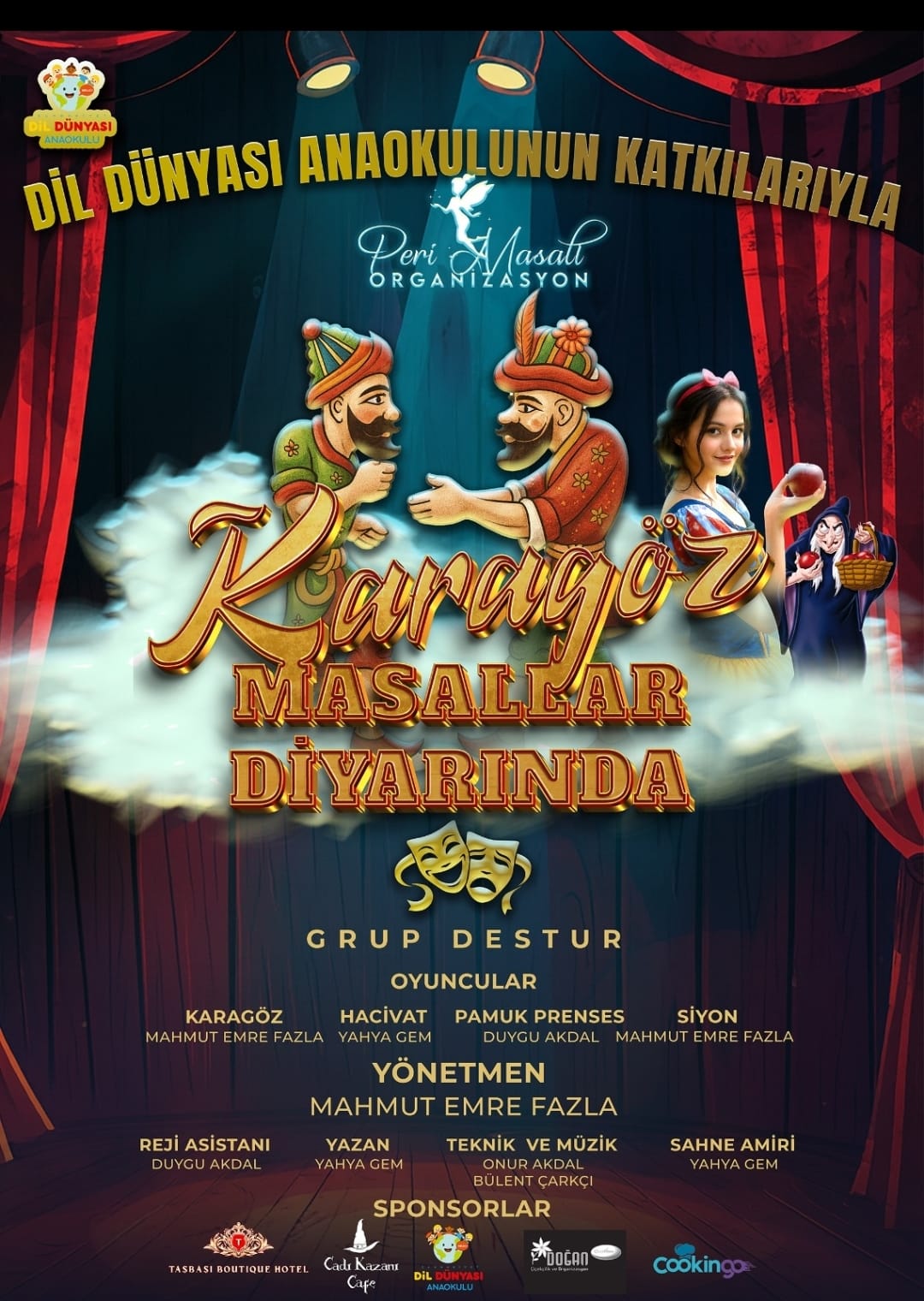 Dil Dünyası Anaokulu’nun katkılarıyla hazırlanan oyun; Karagöz geleneğini Pamuk Prenses gibi masal kahramanlarıyla bir araya getirerek çocuklara hem eğlenceli hem de öğretici bir tiyatro deneyimi sunmayı amaçlıyor.
