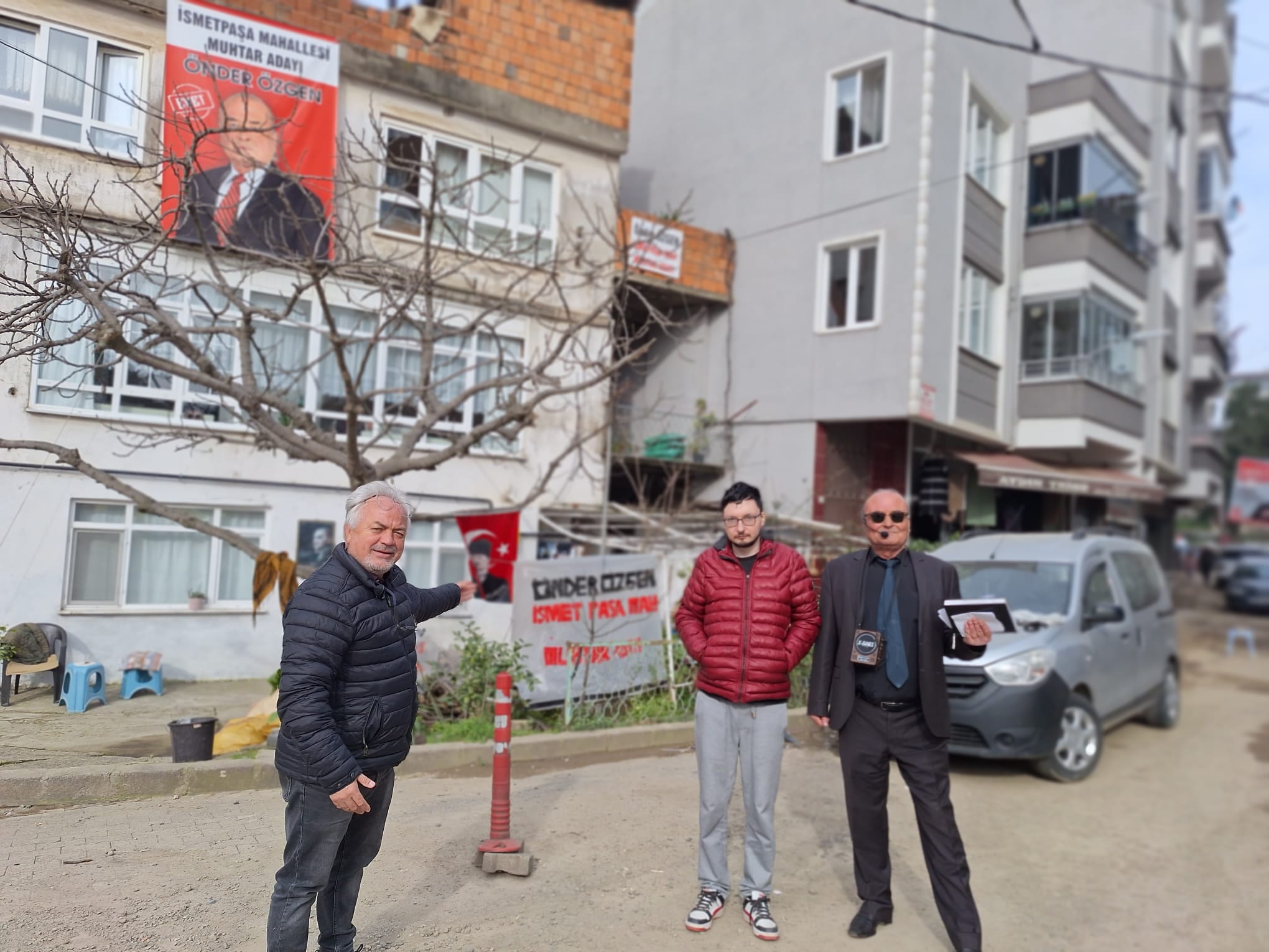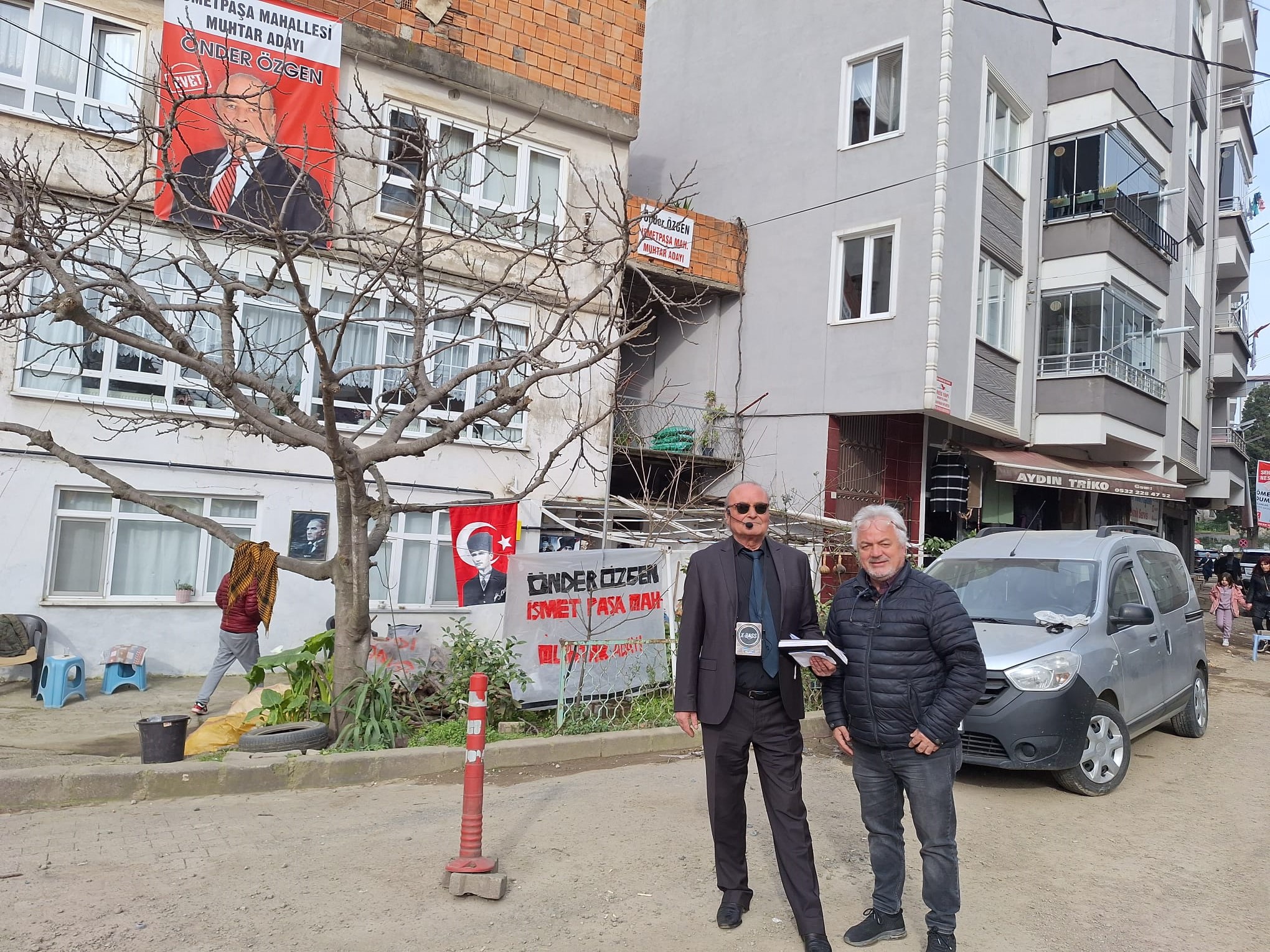 Göz alıcı pankartları ve kalabalığı coşturan ses düzeni, sıradan malzemelerle yapan Özgen, mahalle muhtar adaylığı için sıra dışı bir strateji benimsedi.