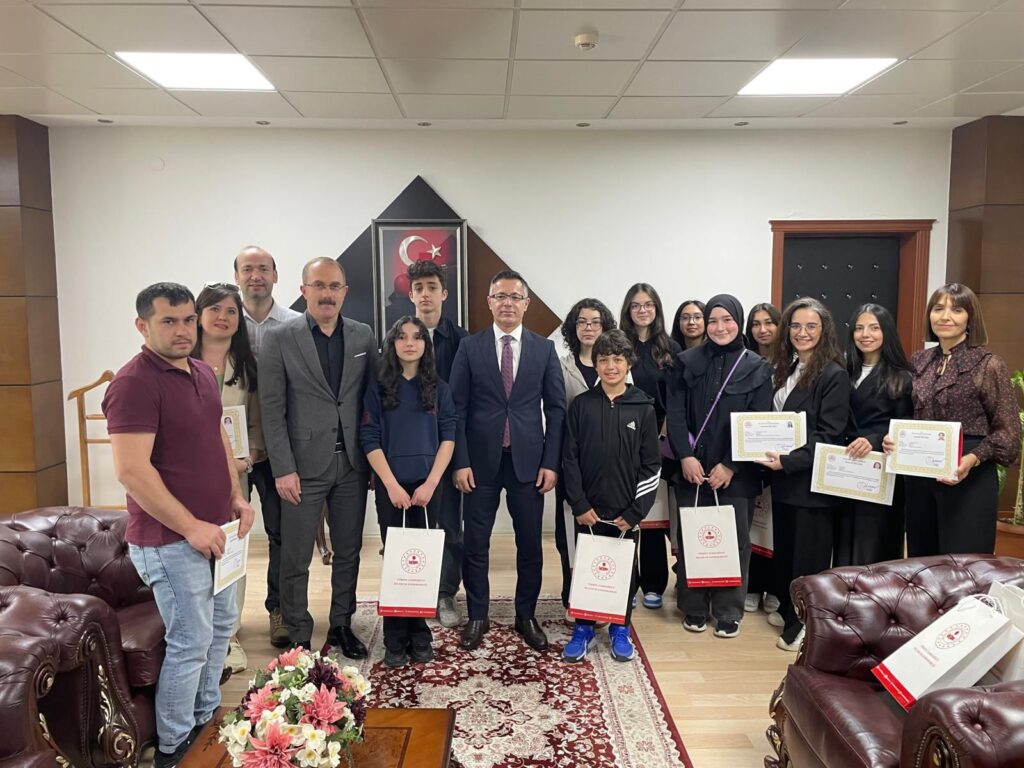 Türkiye genelinde düzenlenen çeşitli akademik ve kültürel yarışmalarda dereceye girerek ilçeyi başarıyla temsil eden öğrenciler, öğretmenleri ve okul idarecileriyle bir araya gelen Kaymakam Koç, tüm eğitim camiasını tebrik etti.