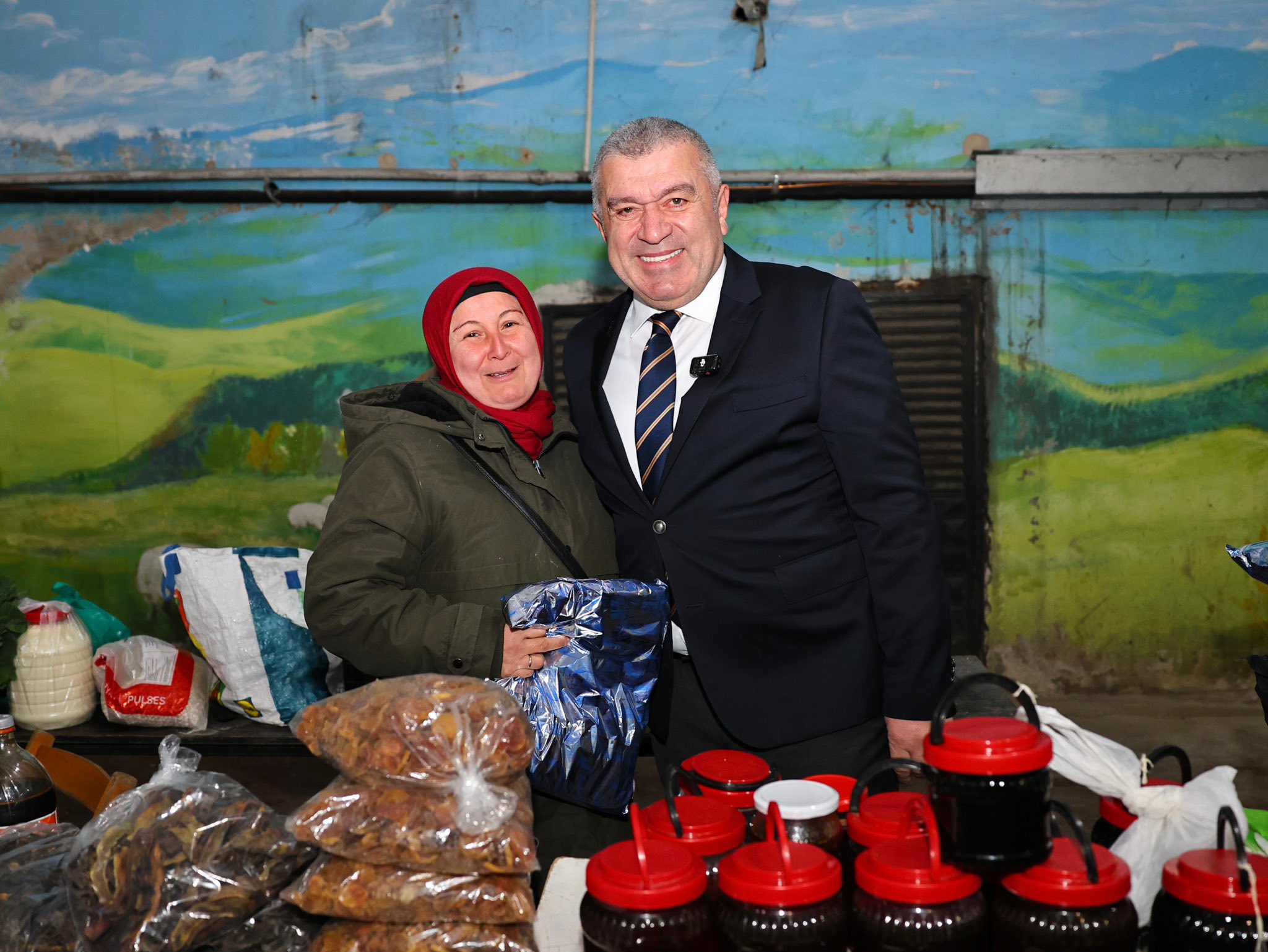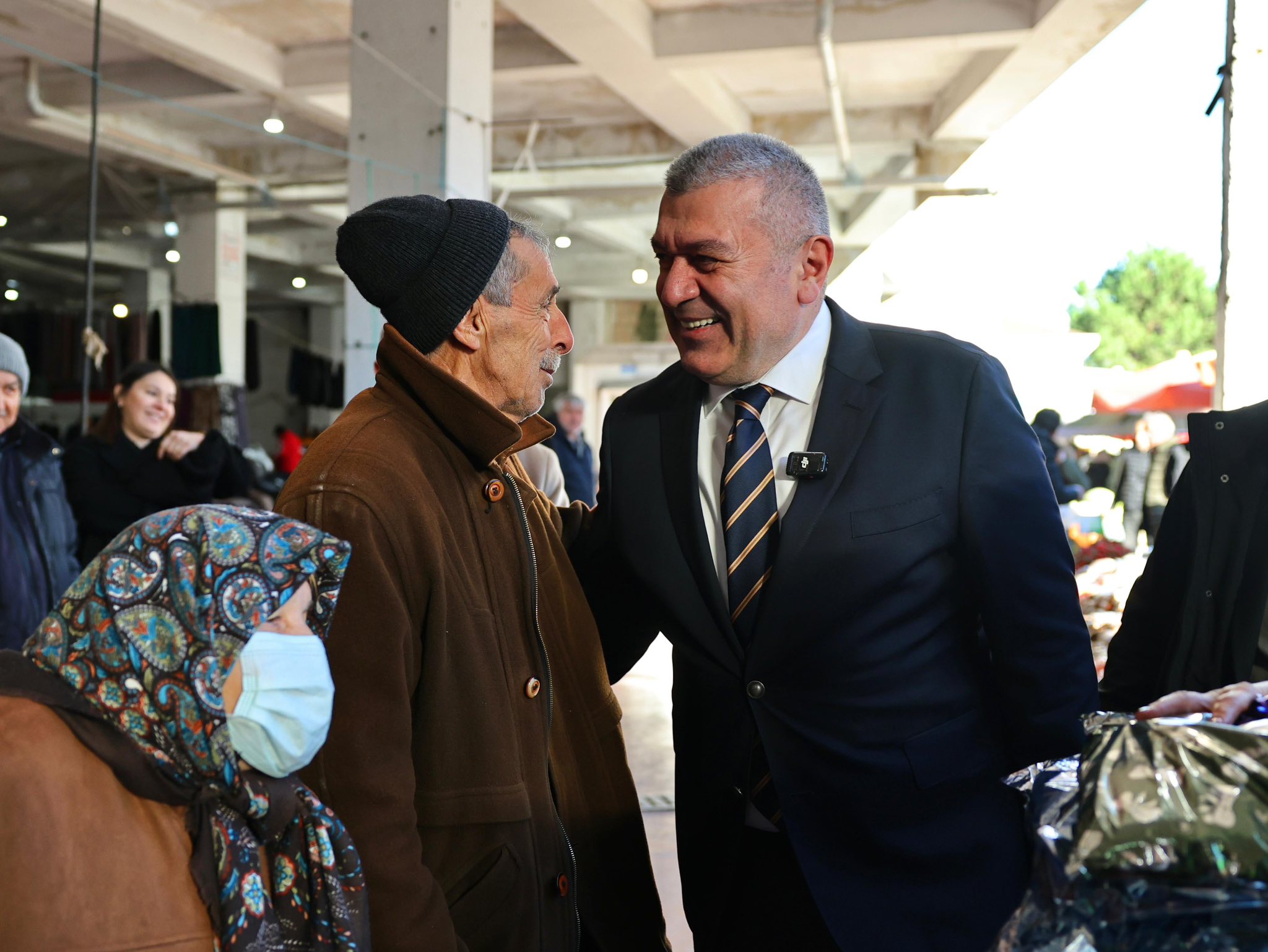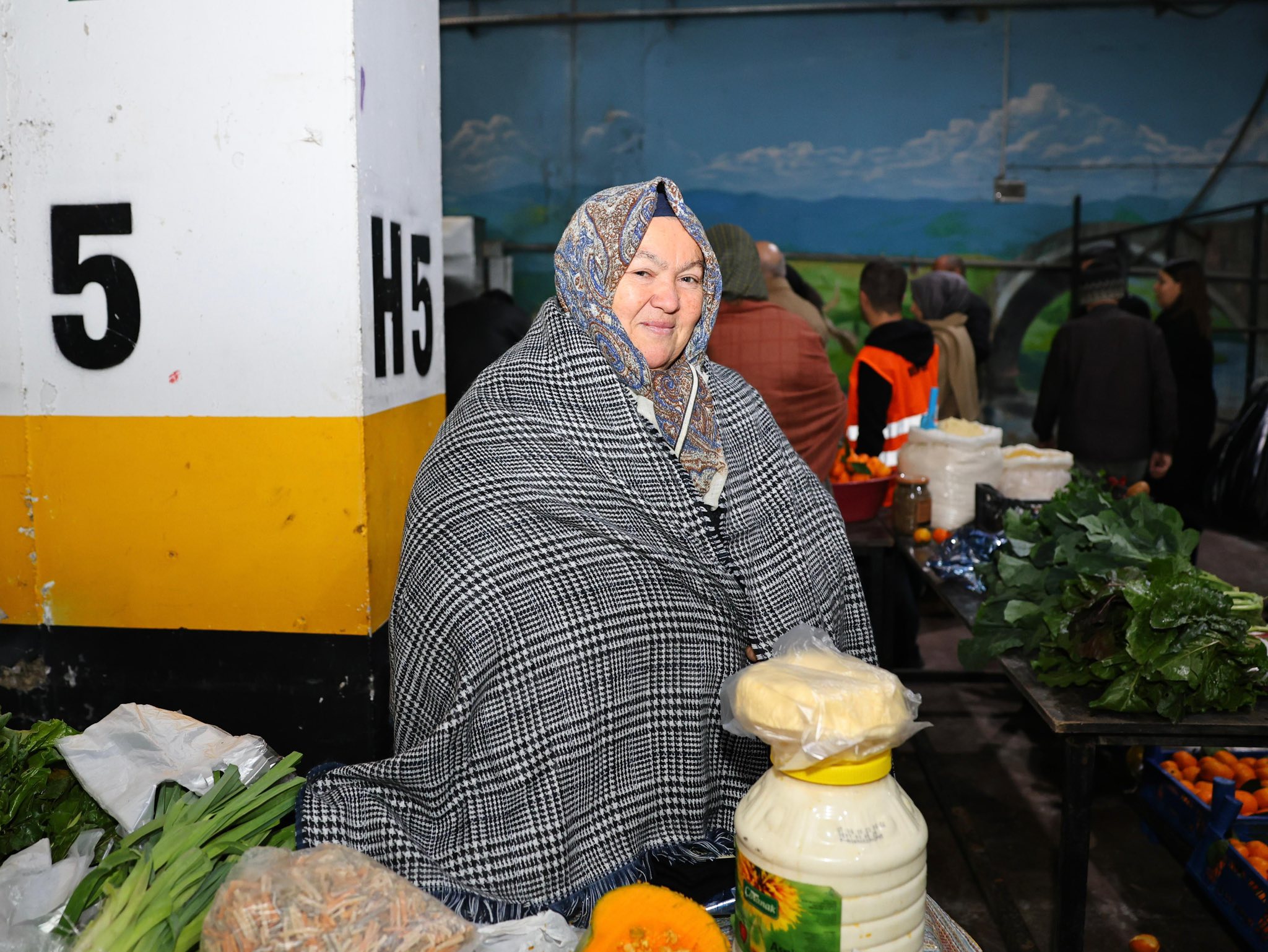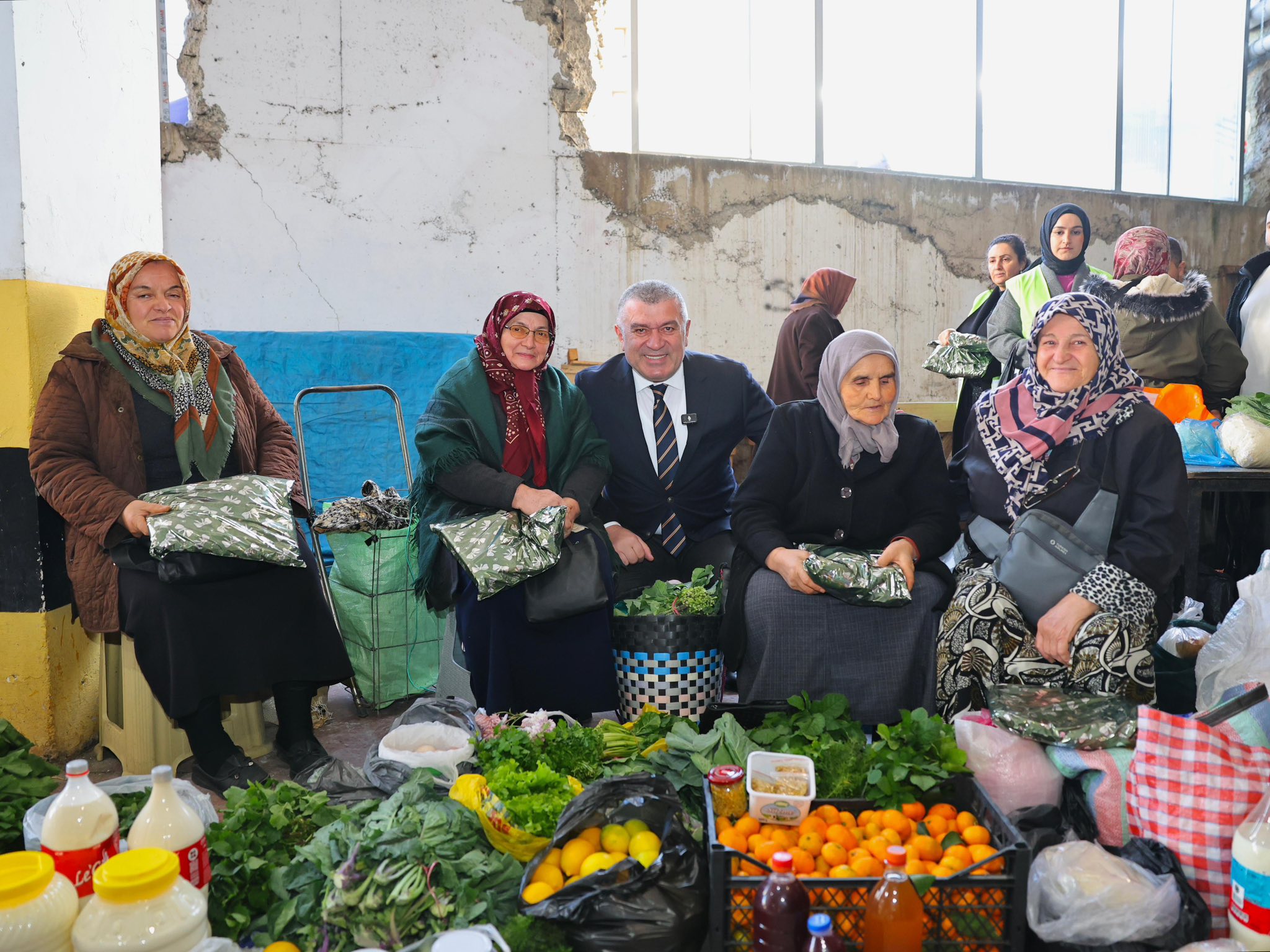 Kışın sert yüzünü hissettirdiği bu günlerde, yeni yılın umut ve sıcaklığını pazar yerine taşımak istediklerini belirten Başkan Sıbıç; tezgâhının başında alın teri döken esnafı, pazarın bereketini omuzlarında taşıyan emektar teyzeleri tek tek ziyaret etti. Soğuğa karşı içleri biraz olsun ısınsın diye şal ve eldiven hediye eden Sıbıç, küçük ama anlamı büyük bu jestle gönüllere dokundu.