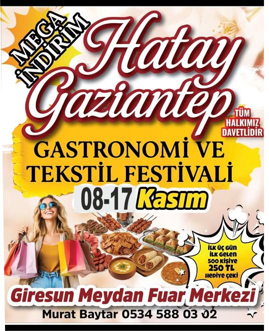 Gaziantep ve Hatay mutfağının en özel tatlarının Giresunlularla buluşacağı bu etkinliğin, hem damaklarda iz bırakacağı hem de şehirde festival coşkusu yaratacağı belirtiliyor.