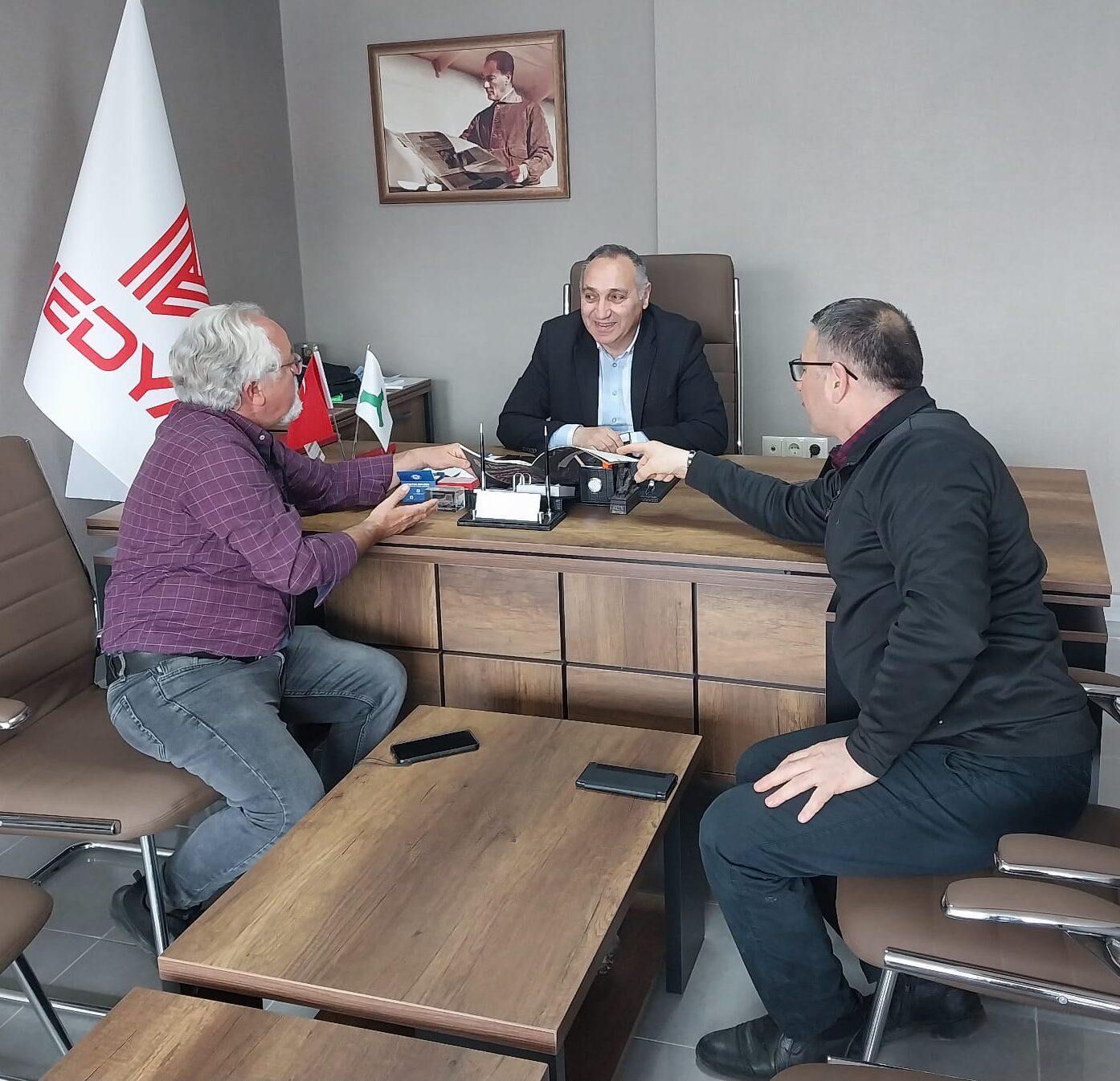 Bulancak Haber ve İnternet Gazetesi Genel Yayın Yönetmeni Mehmet Yaşar, Özen Kitap ve Kırtasiye sahibi Ahmet Kara ile Medya 28 Haber Koordinatörü Ömer Mustafa Yılmaz, işbirliği ve medya sektöründeki güncel gelişmeleri ele almak üzere bir araya geldi.