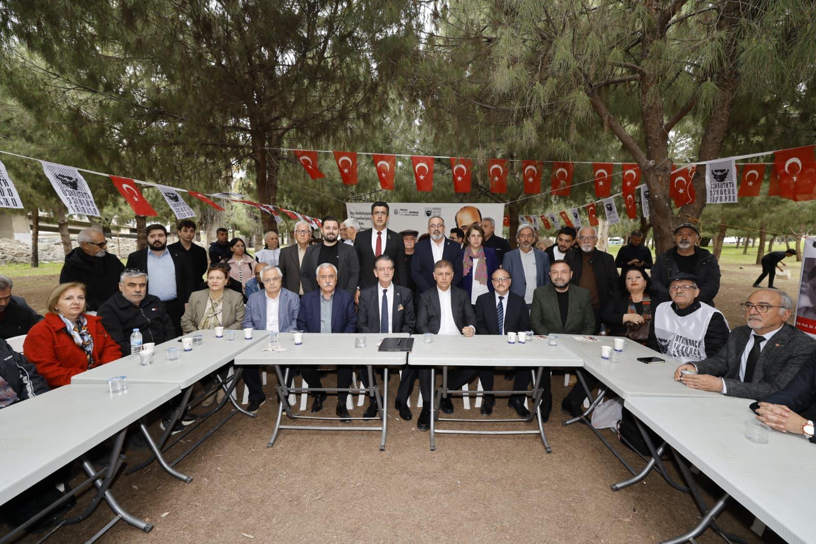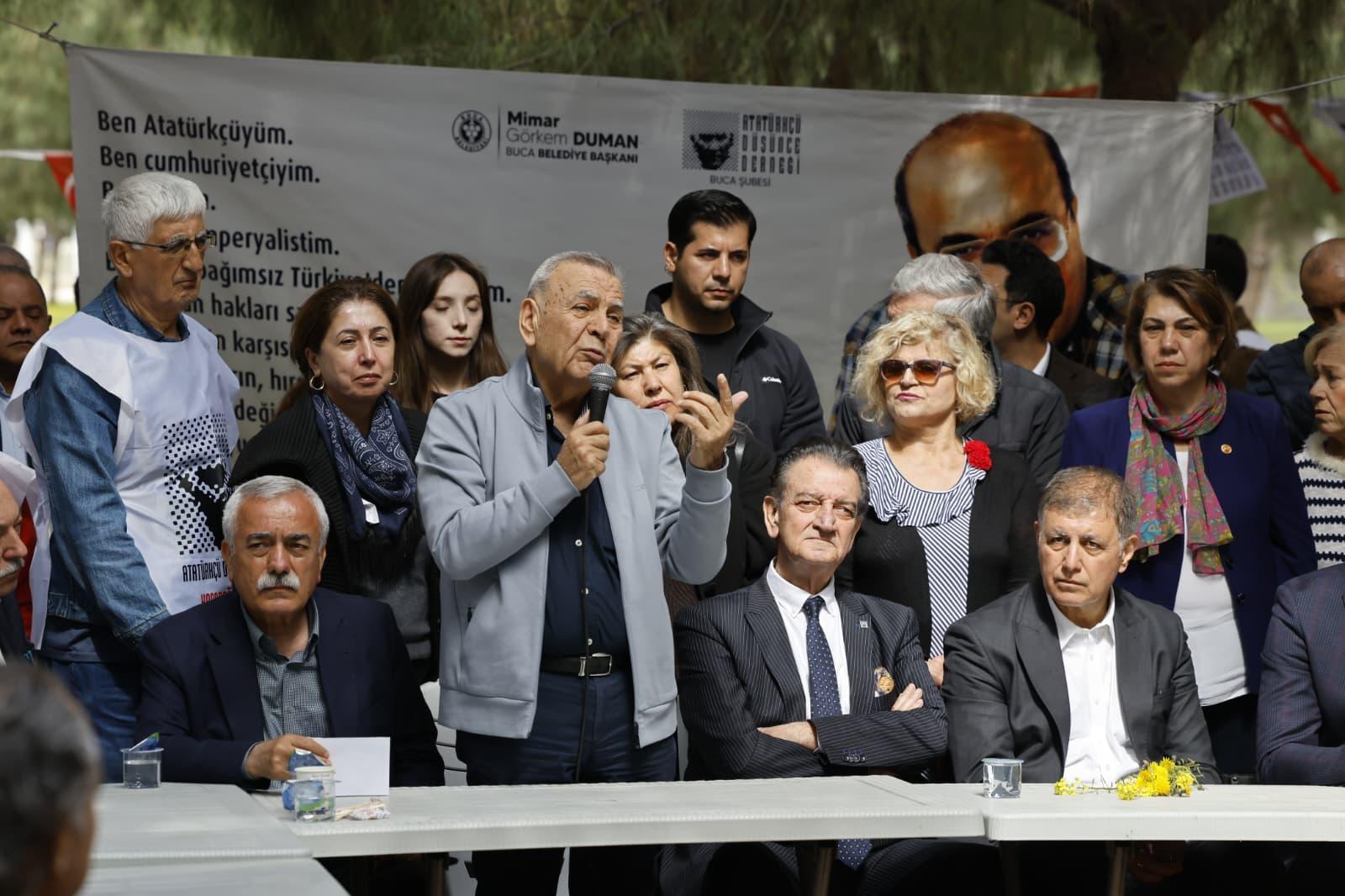 Atatürkçü Düşünce Derneği Genel Merkezi, İzmir’deki şubeleriyle birlikte İzmir Büyükşehir Belediyesi’nin elinden alınan Meslek Fabrikası için nöbet tutan yurttaşlara destek vermek amacıyla alana indi.