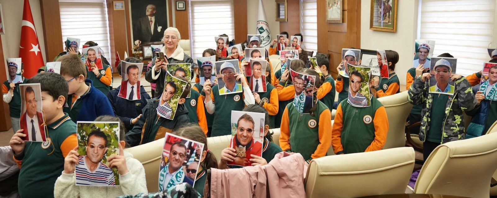 Ziyaretin en dikkat çekici ve renkli anlarından biri ise öğrencilerin yüzlerinde Başkan Fuat Köse maskeleriyle ziyarete gelmesi oldu. Minik öğrencilerin bu sürprizi karşısında gülümseyen Başkan Köse, ortaya çıkan samimi ve neşeli görüntülerle keyifli anlar yaşadı.