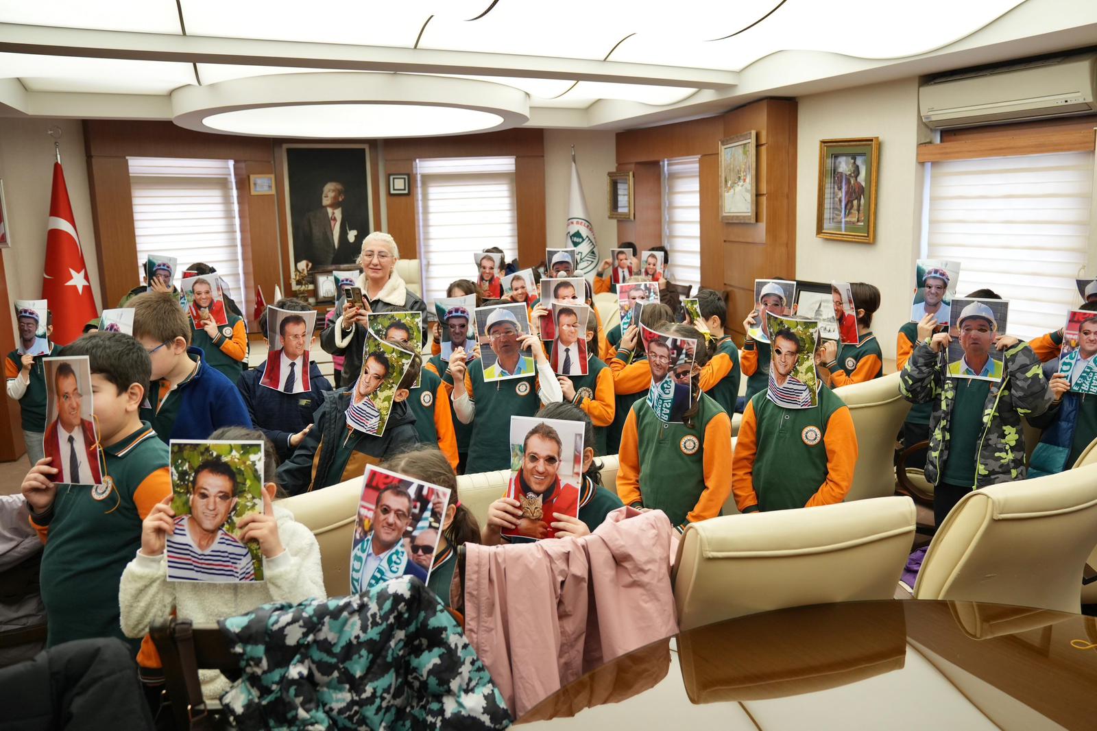 Oldukça sıcak bir atmosferde gerçekleşen buluşmada öğrencilerin meraklı ve ilgili tavırları dikkat çekerken, ziyaret belediye makamında renkli görüntülere sahne oldu.