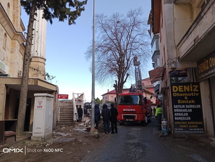 Bulancak itfaiye aracı üzerinde ki görevlinin budadığı ağacın yanında ki bir diğerini ise kestiği objektiflerimize böyle yansıdı.