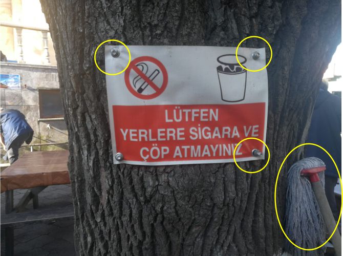 Hiç kimse bu ağaç çürüdü demesin. Bu ağaç kendilerine göre ortada kaldığı için kesildi. Oysa cami içine gidenler orada abdestini alıp ıhlamur ağacının altında namaz saatini bekliyorlardı.  Yazın gölge olan o güzelim ıhlamur ağacının bir tanesinin kesilmesinden dolayı çok üzüldük. 2020 yılında ağaca vidalı çivi ile pankart asanlar neden ağacın kesilmesini engellemediler.