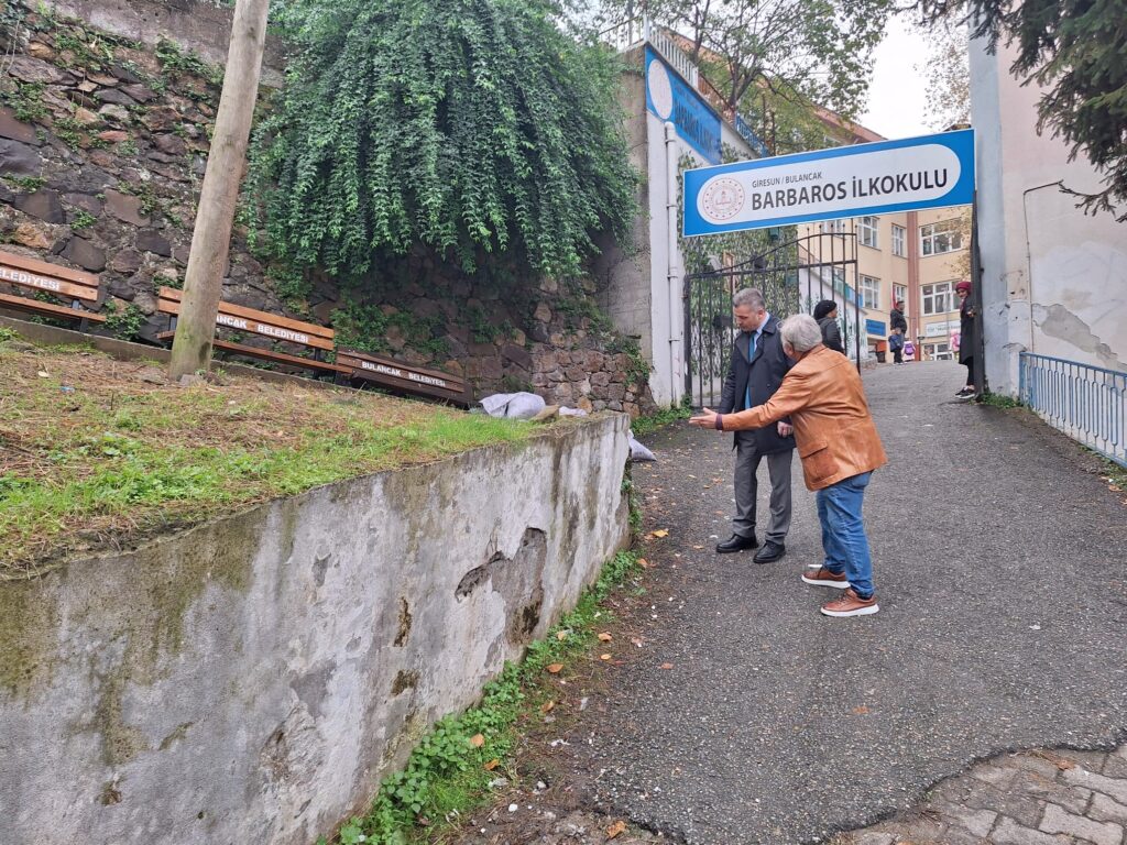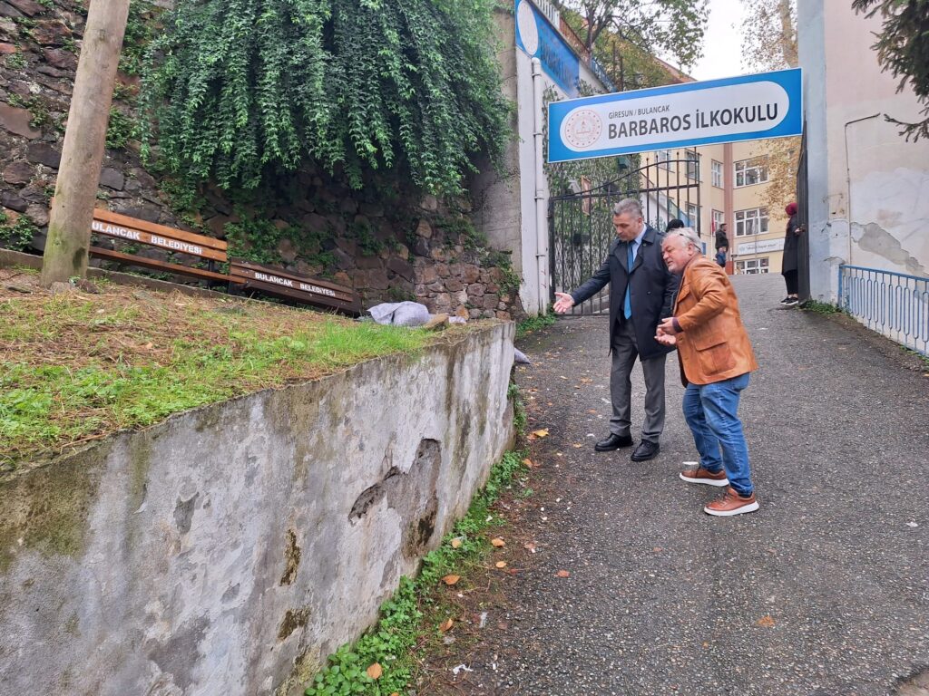 Nebih, okul girişinin hemen yanında bulunan istinat duvarının eğiminden endişe duyduğunu belirtti. Duvarın ilerleyen dönemlerde tehlike oluşturabileceğine dikkat çeken Müdür, Bulancak Belediye Başkanı Necmi Sıdıç’a seslenerek bu alanda acil bir düzenleme yapılması gerektiğini vurguladı.