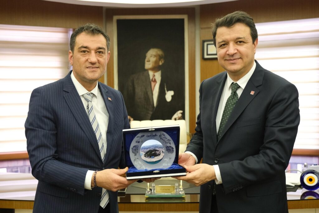 Başkan Köse, Genel Başkan Arıkan’ı belediye binası girişinde çiçekle karşıladı ve daha sonra başkanlık makamına geçildi.