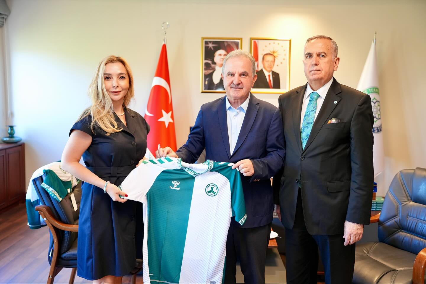 Giresunspor Yönetim Kurulu Üyesi Avukat Ahu Karai̇brahimoğlu, kulüp yönetimi adına Kocaeli Sağlık ve Teknoloji Üniversitesi’nin sahibi, kıymetli hemşehrimiz Talip Emiroğlu’nu ziyaret etti.