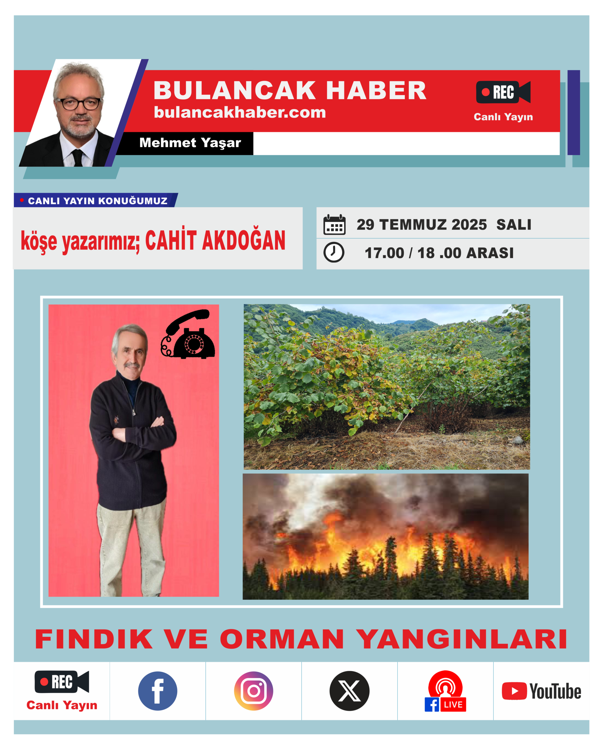 Bulancak Haber köşe yazarı ve canlı yayın program sunucusu kimliğiyle de tanınan Cahit Akdoğan