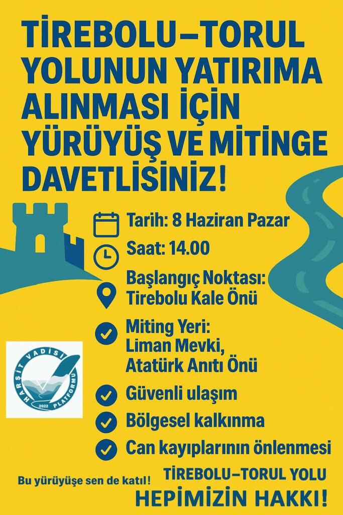 Bugün burada, Giresun ve Gümüşhane halkının ortak paydası ve yıllardır süregelen bir sorunu olan ve tarihî derinliği milattan önce 2000 li yıllara dek uzayan Tirebolu–Torul Yolunun yeniden devlet yatırım programına alınması ve güvenli ulaşım ile bölgesel kalkınmanın sağlanması amacıyla bir araya geldik.