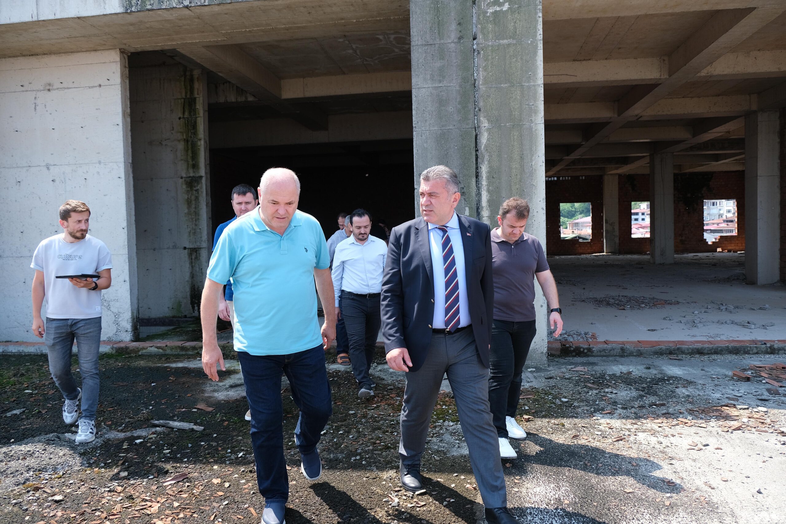 Bulancak Belediye Başkanı Necmi Sıbıç ve Bulancak Kadir Karabaş UBYO Müdürü Doç. Dr. Oktay Karaman binada yaptıkları incelemelerin ardından binanın eksiklerinin tamamlanarak tahsis sürecinin hızlandırılması konusunda fikir ve iş birliği yaptılar.